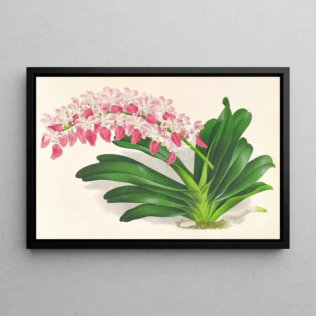 Aerides maculosum, ein Werk von Jean Jules Linden, entführt uns in eine florale Welt von seltener Zartheit. Dieses Gemälde hebt eine Orchidee mit zarten Blütenblättern hervor, die mit bunten Flecken verziert sind und sofort den Blick auf sich ziehen. Die Komposition ist sorgfältig gestaltet, jedes Element wird durch ein subtilen Spiel von Licht und Schatten hervorgehoben. Die lebendigen Farben, die von tiefem Grün bis zu leuchtendem Rosa reichen, schaffen eine Atmosphäre, die sowohl beruhigend als auch dynamisch ist. Linden's Technik, die botanische Präzision mit künstlerischer Sensibilität verbindet, macht diesen kunstdruck von Aerides maculosum zu einer wahren Ode an die Natur.