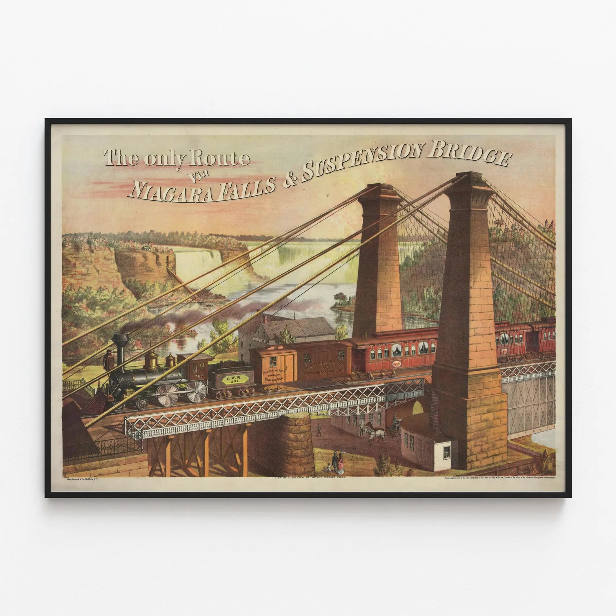 Affiche vintage du Pont Suspendu et Chutes du Niagara