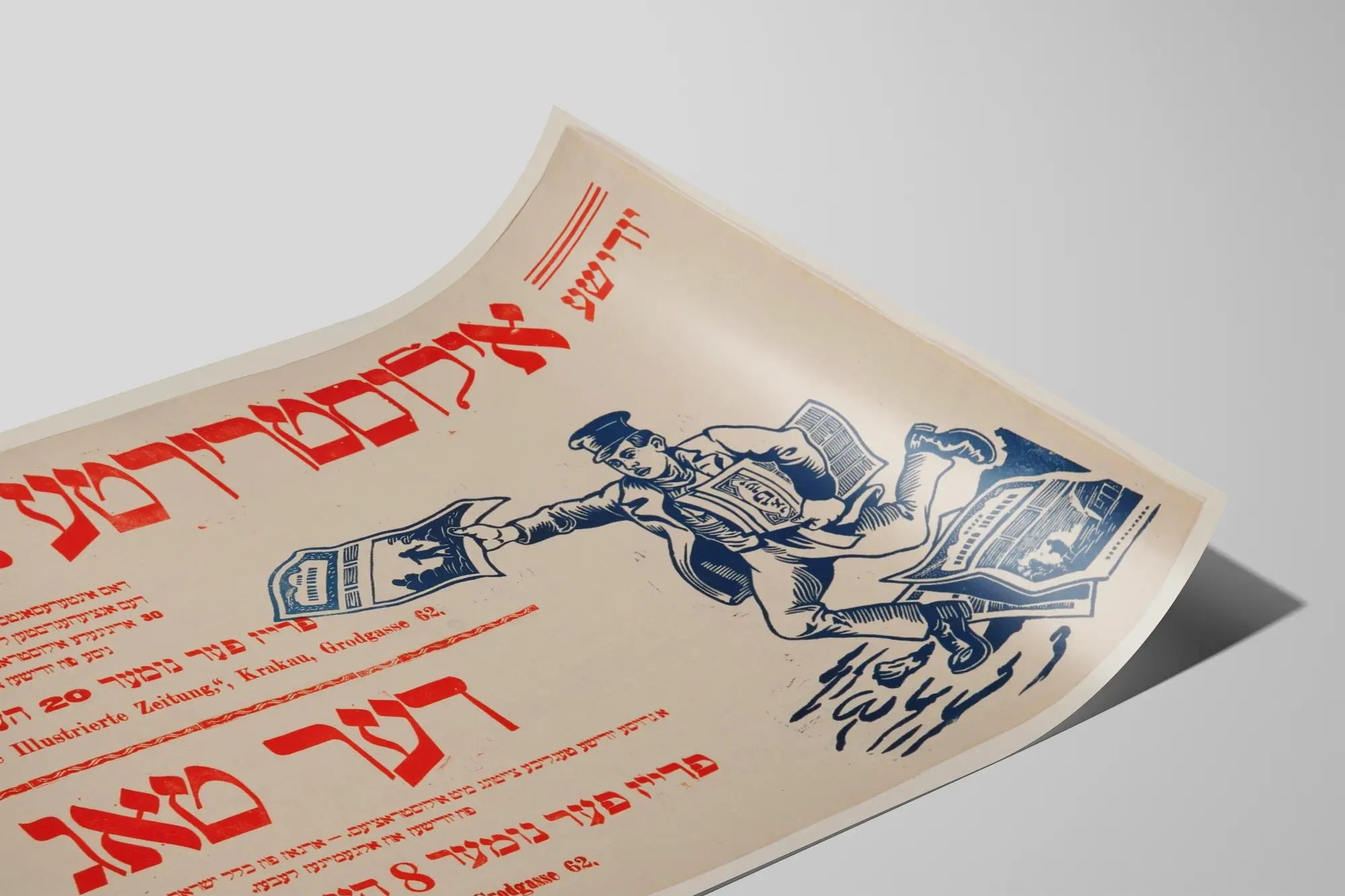 Affiche vintage en yiddish - Messager de journaux illustrés