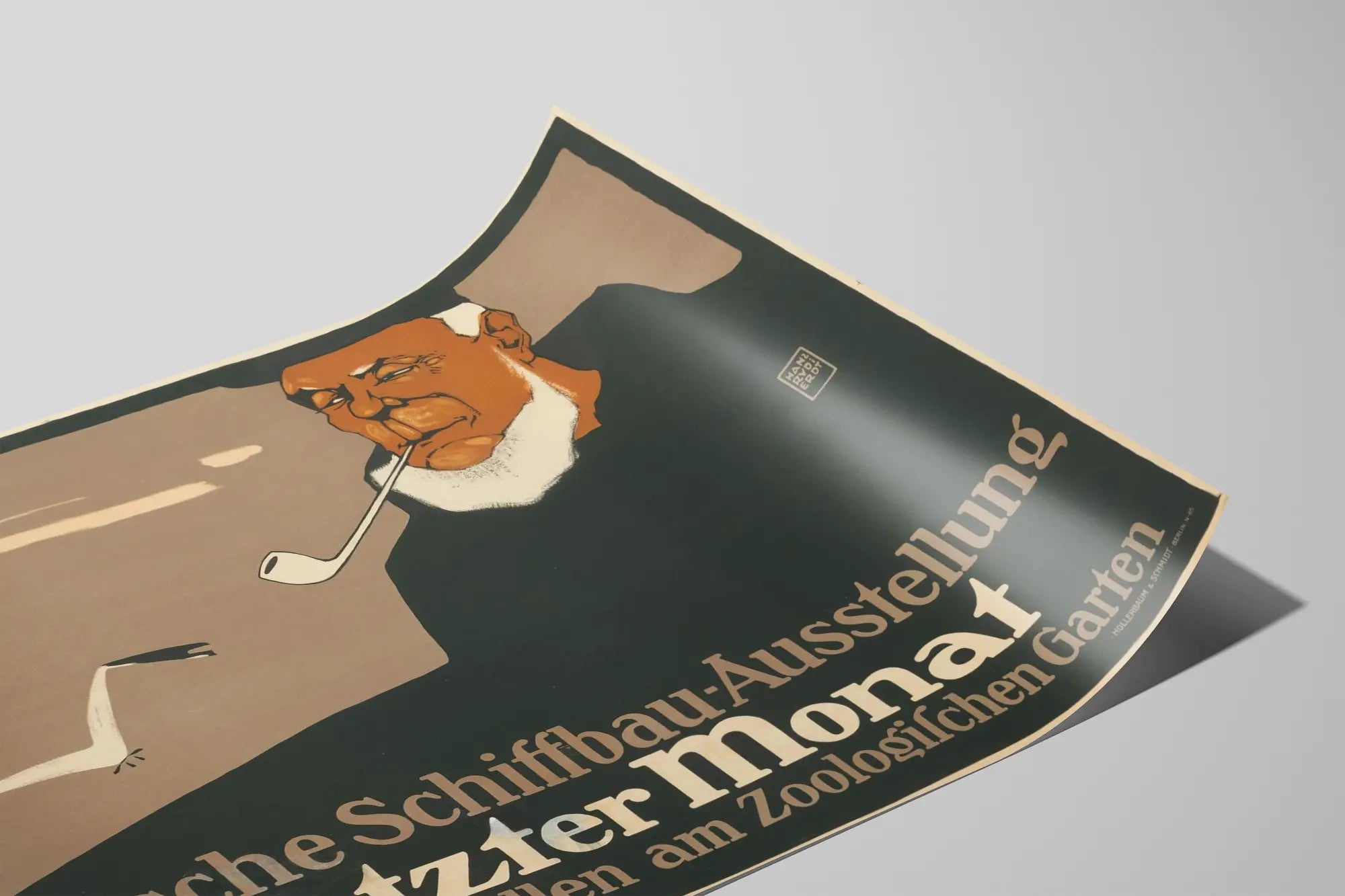 Cette affiche vintage est une pièce emblématique de décoration murale, idéale pour les amateurs d'art graphique et d'histoire industrielle. Représentant une scène sobre et évocatrice, elle met en avant un homme âgé au visage marqué par le temps, fumant une pipe, dans un style artistique minimaliste et aux teintes ocres et noires. La composition inclut également une mouette en vol, symbole de la mer et de la navigation. Le texte en allemand annonce la "Deutsche Schiffbau-Ausstellung" (Exposition allemande de construction navale), précisant que c'est le dernier mois de cette exposition se tenant dans les halles d'exposition près du Jardin Zoologique. Cette affiche est un exemple parfait d'art publicitaire historique, qui allie typographie et illustration pour attirer l'attention tout en diffusant un message clair. En décoration murale, elle apportera une touche rétro et authentique à n'importe quel espace, qu'il soit contemporain ou décoré dans un style vintage. Parfaite à encadrer, cette affiche est un choix élégant pour personnaliser un bureau, une bibliothèque ou un salon, notamment pour les passionnés de marine, d'art ancien ou d'histoire industrielle. Son design épuré et les couleurs sobres facilitent son intégration dans de nombreux styles de décoration intérieure, tout en conservant une forte présence visuelle. Un poster qui raconte une époque et valorise le patrimoine culturel allemand à travers l'art graphique.