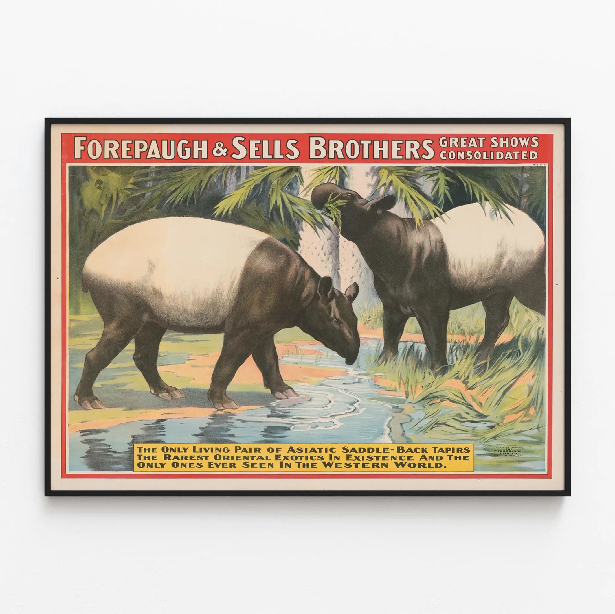 Affiche vintage Forepaugh & Sells Brothers avec Tapirs Asiatiques