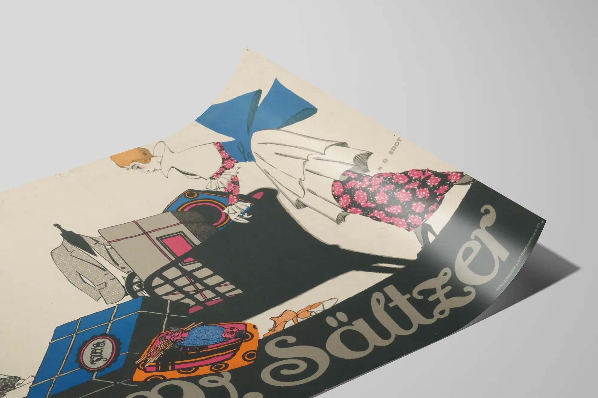 Affiche vintage J.W. Sältzer - Publicité mode et vêtements
