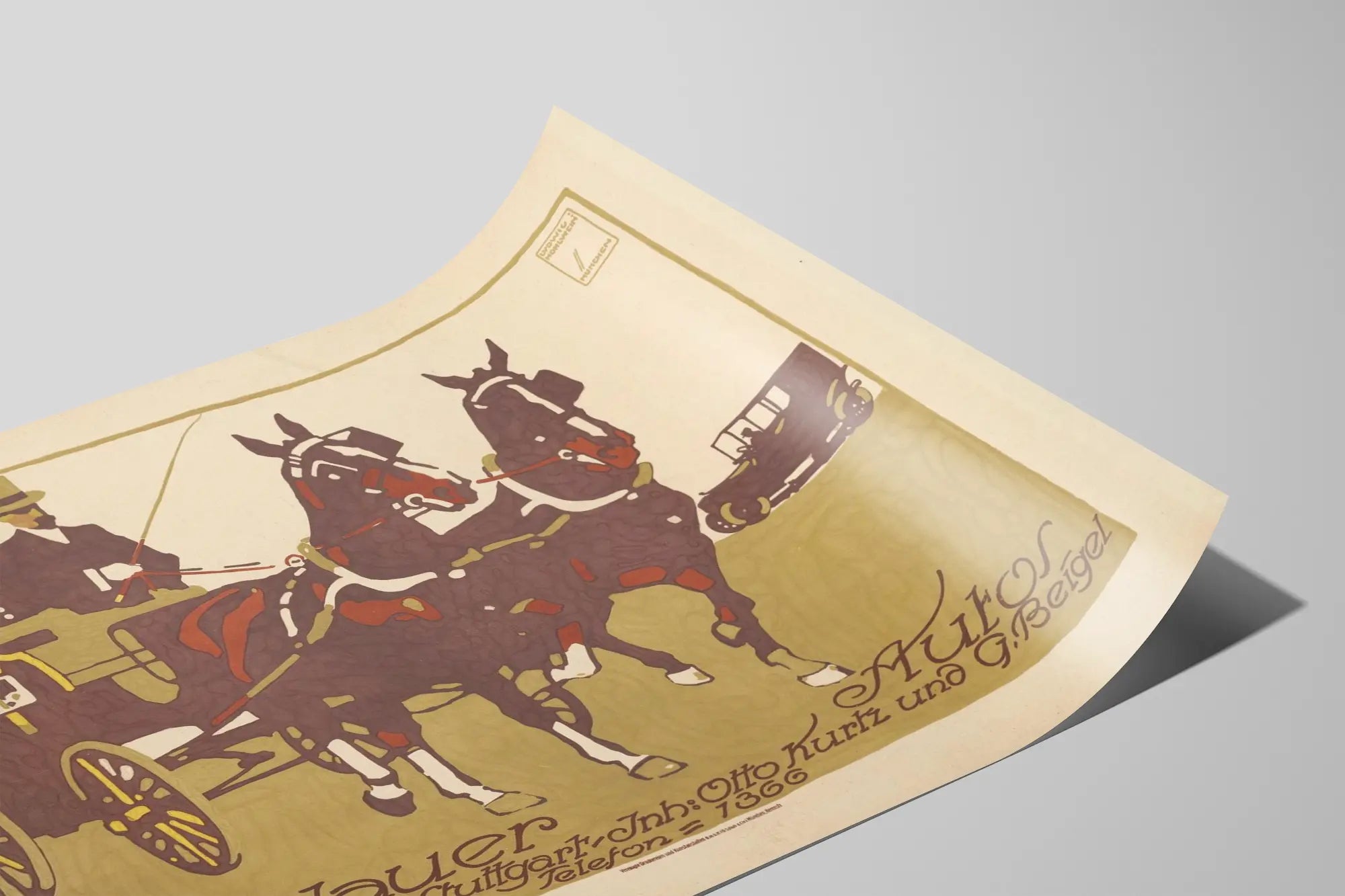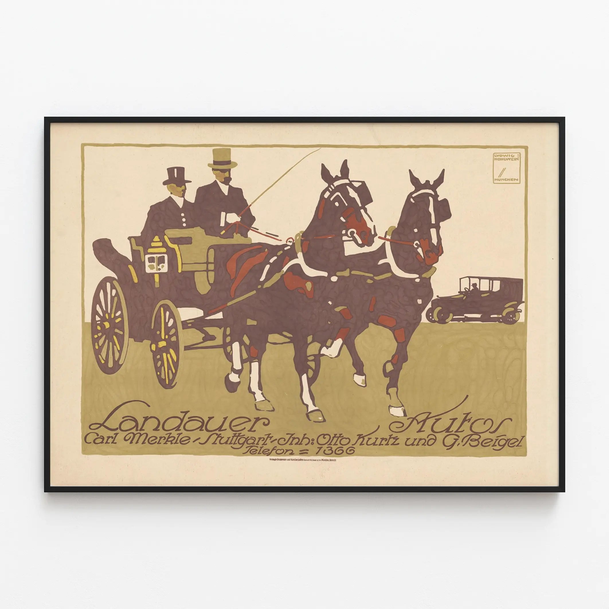 Affiche vintage Landauer Autos Stuttgart par Ludwig Hohlwein