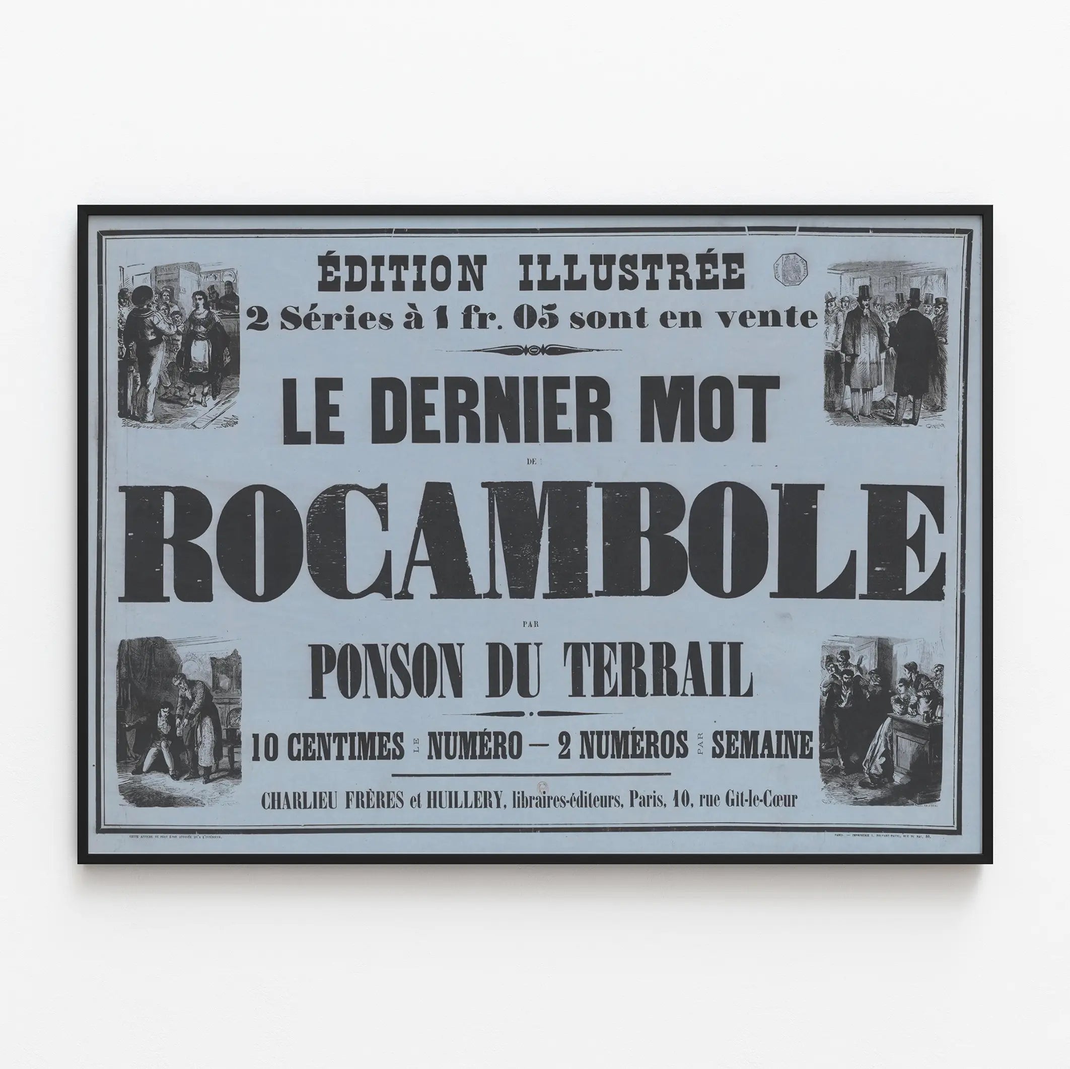 Que vous soyez passionné par la littérature, amateur d'affiches anciennes ou simplement en quête d'une décoration murale originale, cette affiche "Le Dernier Mot de Rocambole" est un incontournable. Elle s'intègre aisément dans différents décors, qu'ils soient classiques ou éclectiques, grâce à son esthétique sobre et ses contrastes marqués. Un vrai coup de cœur pour les fans de décoration murale qui apprécient l'alliance du texte et de l'image dans une présentation authentique.