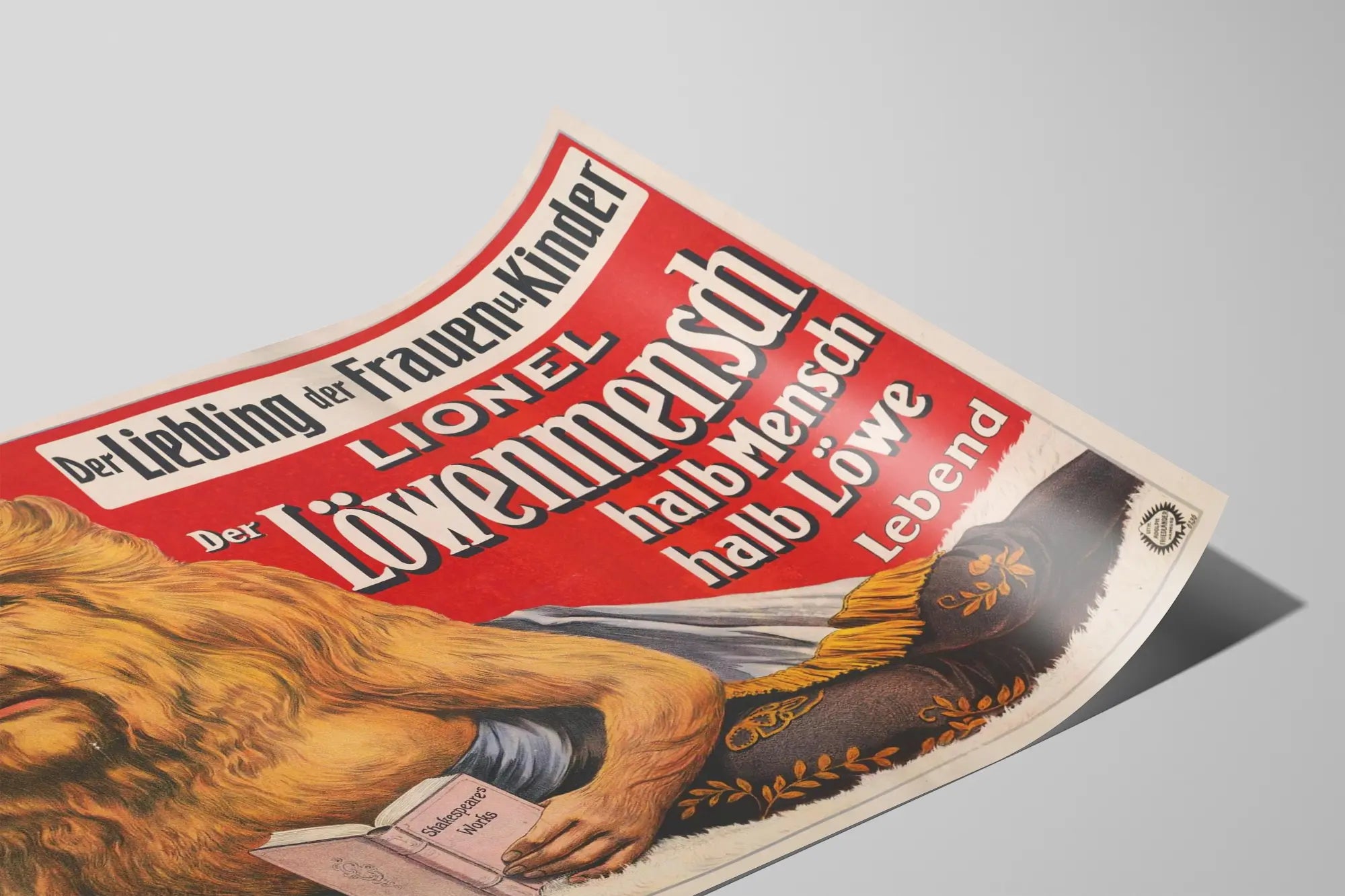 Affiche vintage Lionel Löwenmensch, demi-homme demi-lion