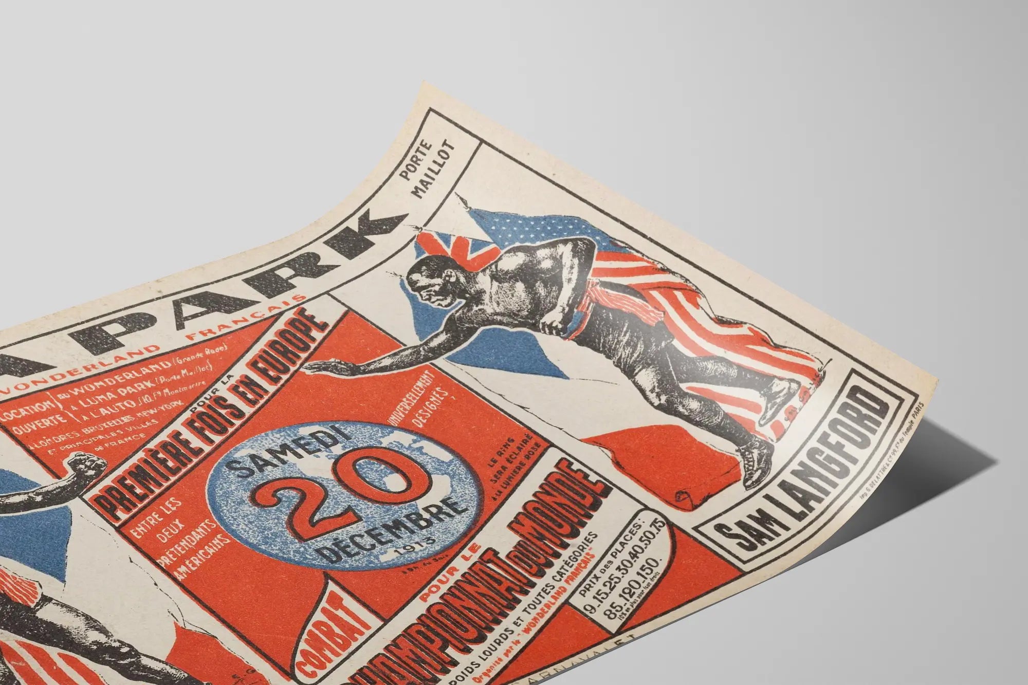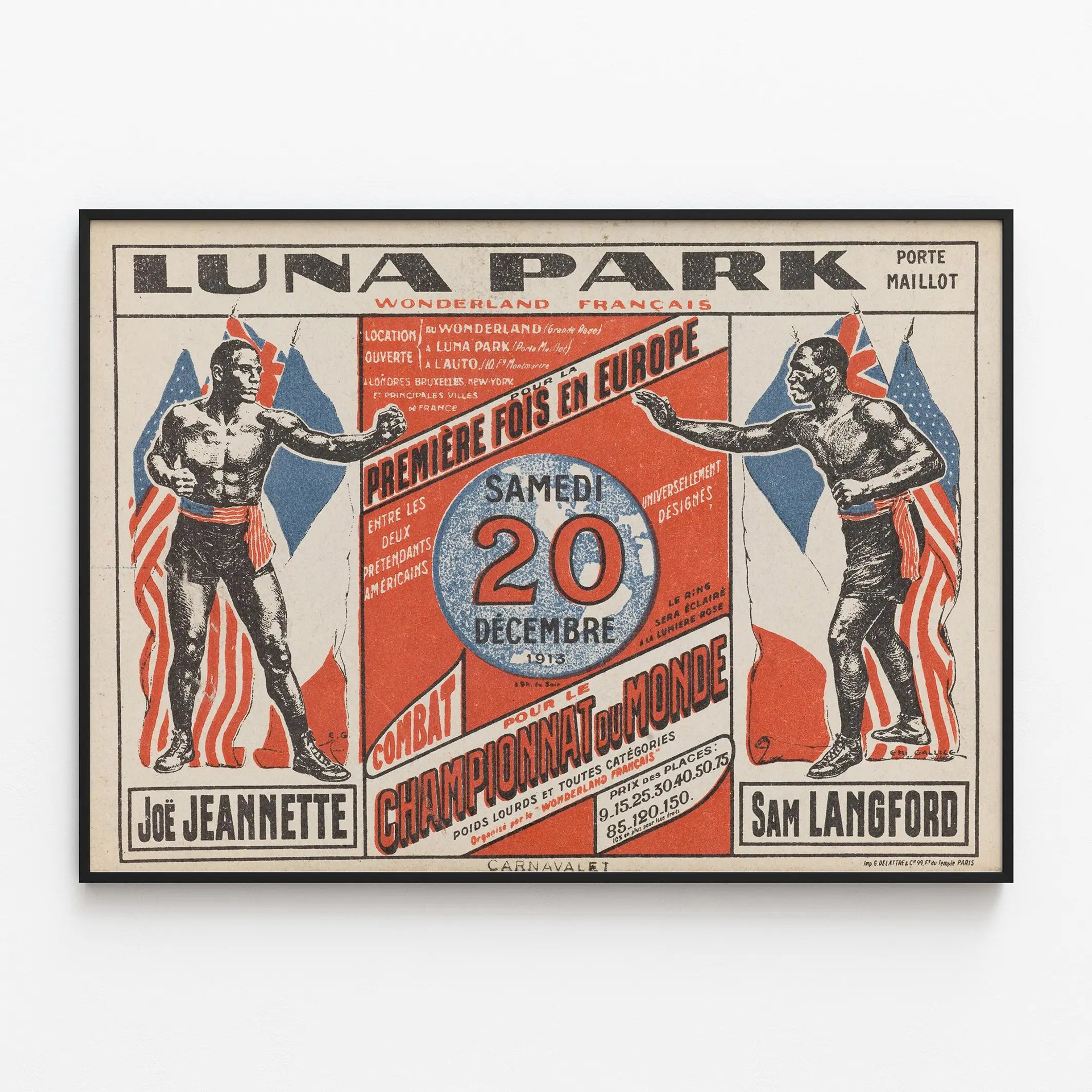 Affiche vintage Luna Park Porte Maillot Championnat du Monde de Boxe 1913