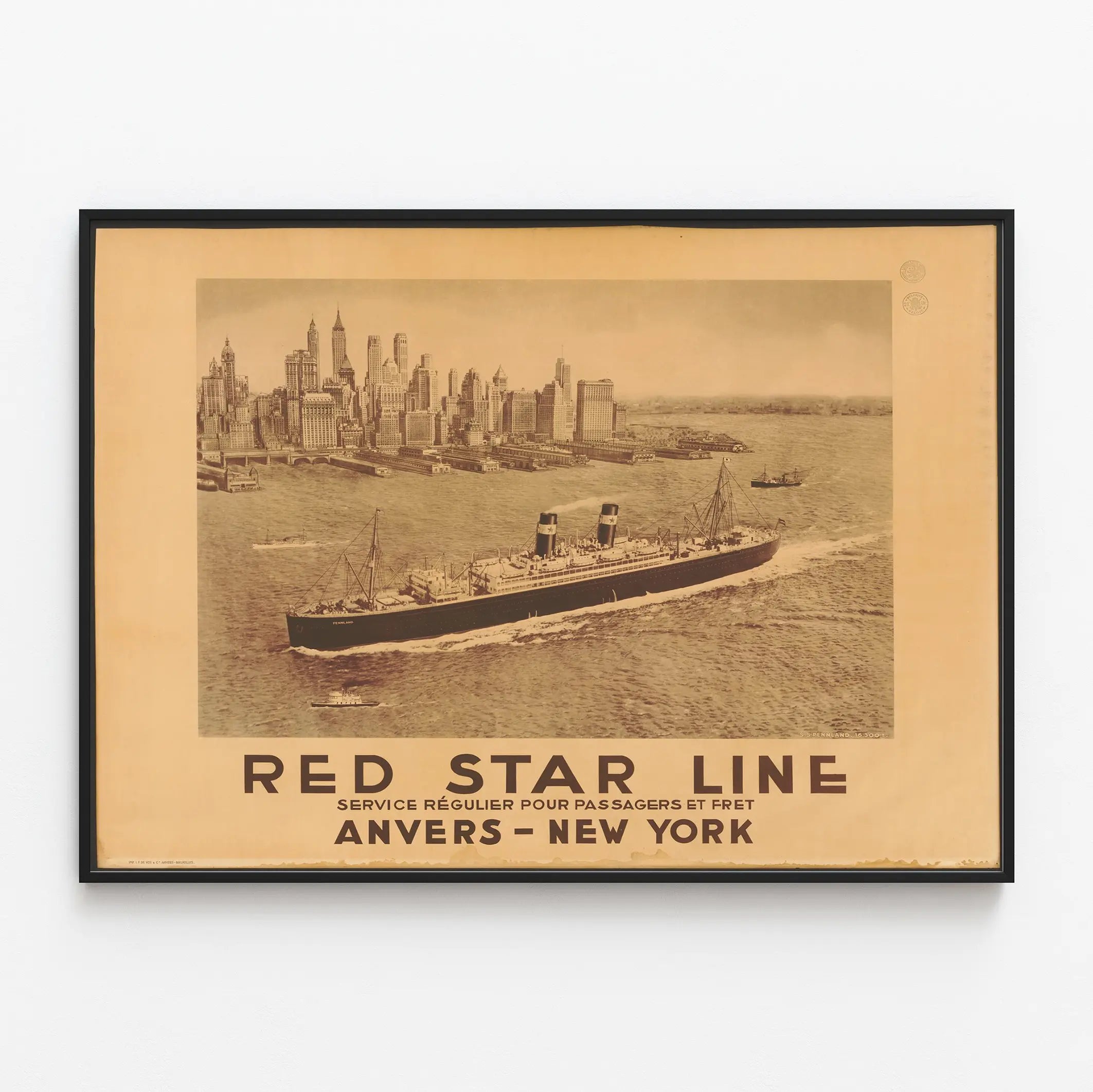 Vintage-Poster der Red Star Line Antwerpen - New York