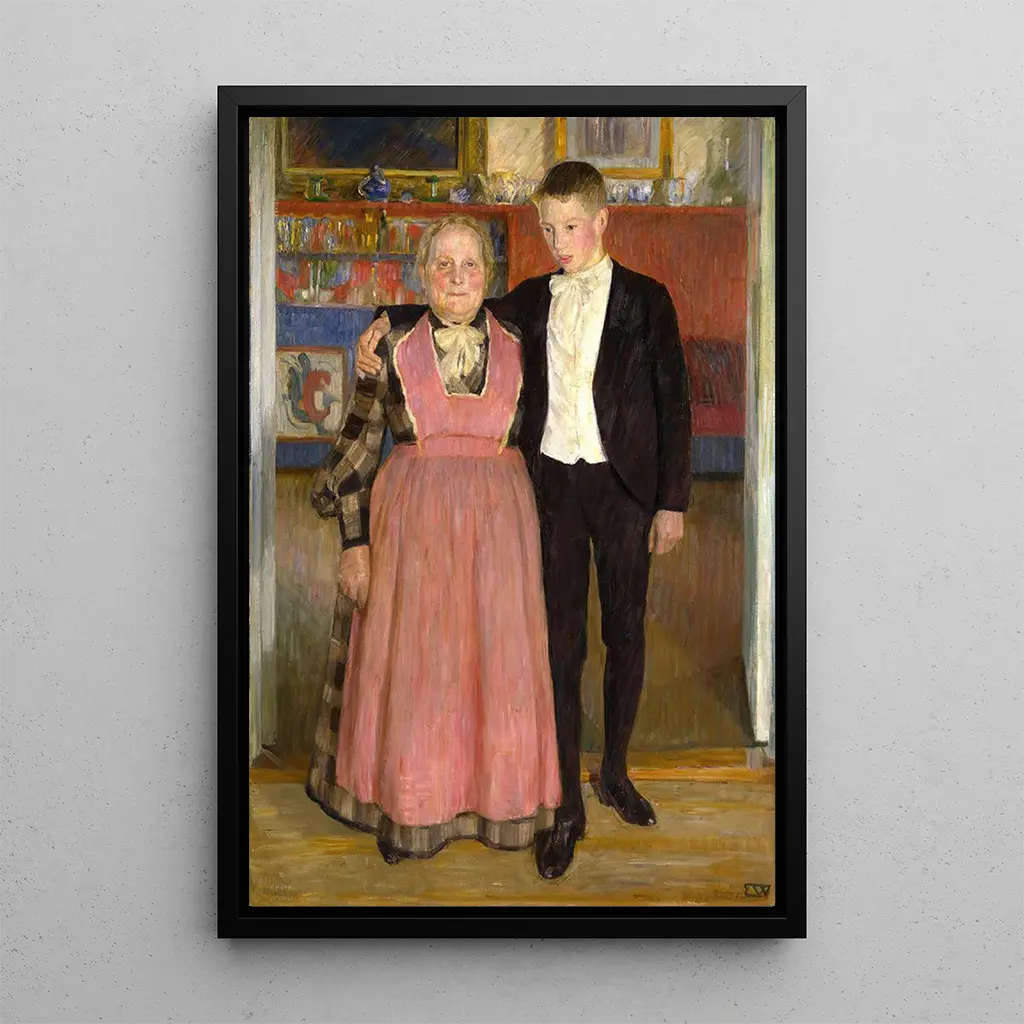 Die kunstdruck von Vieille nourrice von Erik Werenskiold taucht uns in eine Welt voller Sanftheit und Nostalgie ein. Dieses Gemälde, geschaffen mit warmen, erdigen Nuancen, ruft die Einfachheit des Landlebens in Erinnerung. Der Künstler verwendet Ölfarbentechniken, um die Texturen der Kleidung und die runzlige Haut der nourrice einzufangen, was von einem Leben voller Hingabe zeugt. Die Atmosphäre, die vom Werk ausgeht, ist sowohl friedlich als auch tröstlich und lädt den Betrachter ein, über die emotionalen Bindungen nachzudenken, die die Generationen verbinden.