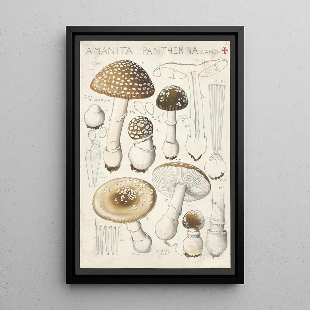 Die Wahl einer kunstdruck-Reproduktion des Amanite panthère Candolle ist eine Entscheidung, die Ihr Interieur bereichern wird. Ob im Wohnzimmer, im Büro oder im Schlafzimmer – dieses Bild verleiht Ihrer Dekoration einen Hauch von Eleganz und Originalität. Die Qualität der Kunstdruck-Reproduktion garantiert eine Treue zu den Farben und Details des Originalwerks, sodass Sie seine ästhetische Anziehungskraft voll genießen können. Durch die Integration dieses Leinwandbildes in Ihren Raum schaffen Sie einen faszinierenden Blickfang, der Neugier und Bewunderung weckt. Der Amanite panthère Candolle ist viel mehr als nur ein Kunstwerk; es ist eine Einladung zur Betrachtung und Reflexion über die komplexe Schönheit der Natur.