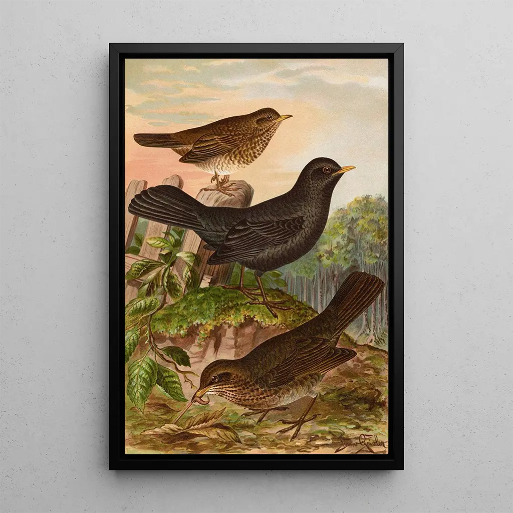 Die Wahl eines kunstdrucks von Turdus merula bedeutet, ein dekoratives Stück zu wählen, das Ihrem Interieur einen Hauch von Eleganz verleiht. Ob im Wohnzimmer, im Büro oder im Schlafzimmer, dieses Gemälde wird durch seine Druckqualität und seine ästhetische Anziehungskraft überzeugen. Die Farbtreue und die Details ermöglichen es, die ruhige Atmosphäre eines Frühlingsgartens nachzubilden, und verleihen gleichzeitig eine Note von Raffinesse. Dieses Werk lädt zur Betrachtung und Träumerei ein und macht Ihren Raum zu einem Ort der Gelassenheit und Inspiration.