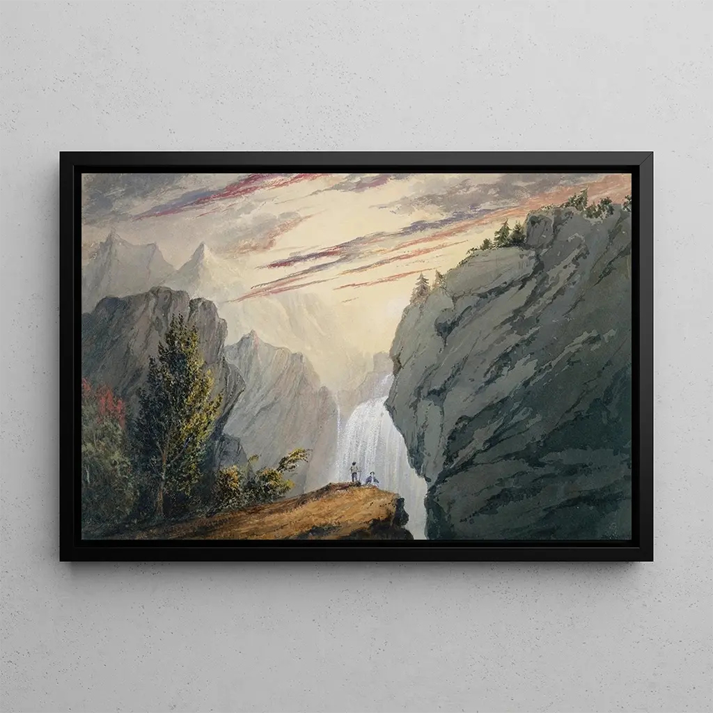 Die kunstdruck À la cascade von David Claypoole Johnston entführt uns in eine natürliche Landschaft, in der das Wasser mit Kraft und Schönheit sprudelt. Die Nuancen von Blau und Grün verschmelzen zu einer lebendigen Szene, in der das Licht auf den unruhigen Wellen spielt. Die Technik von Johnston, die Realismus und Romantik verbindet, verleiht diesem Werk eine fast poetische Dimension. Jedes Detail, von den Felsen bis zu den Blättern, wird mit einer Präzision wiedergegeben, die zur Flucht und zur Betrachtung der Größe der Natur einlädt.