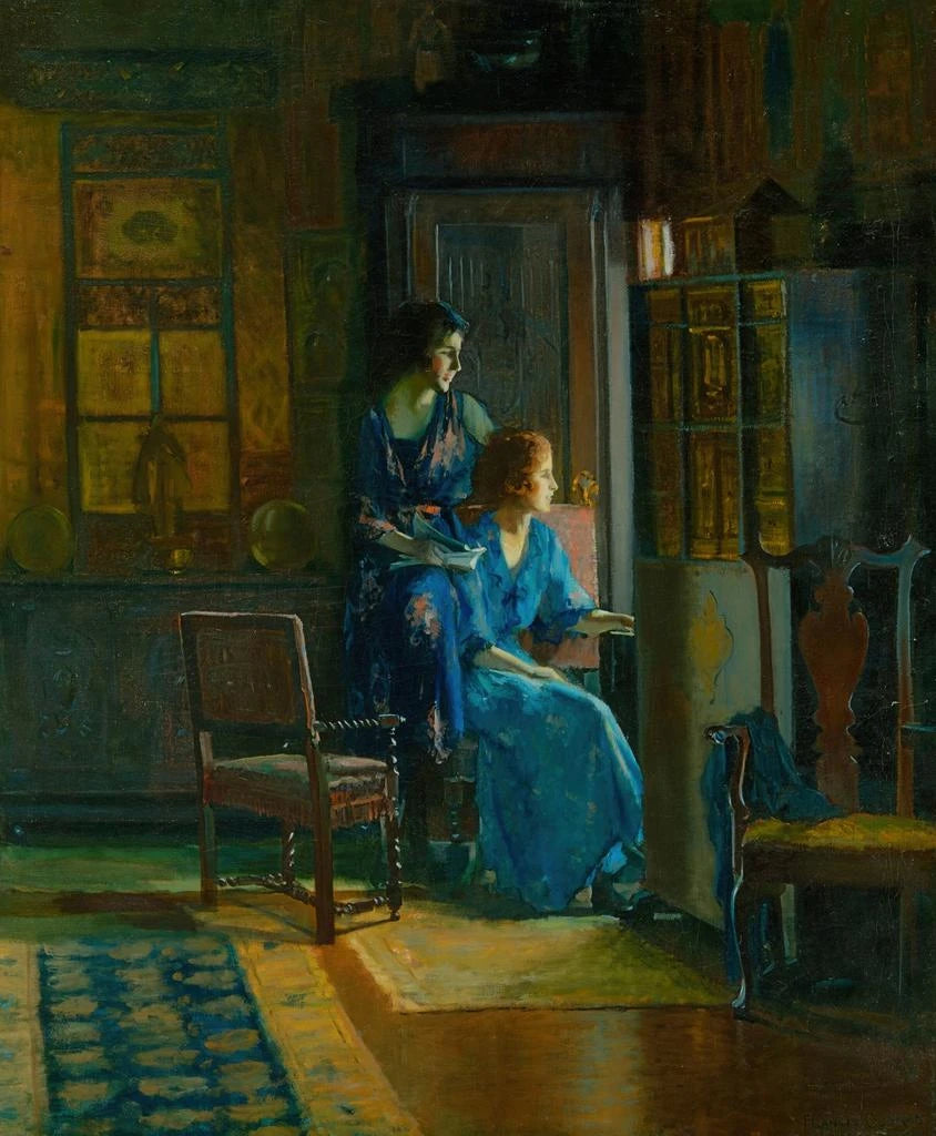 Francis Coates Jones, geboren 1857, wurde von den künstlerischen Bewegungen seiner Zeit beeinflusst, insbesondere vom Realismus und Impressionismus. Ausgebildet an der Pennsylvania Academy of the Fine Arts, konnte er die Techniken seiner Vorgänger integrieren und gleichzeitig einen persönlichen Stil entwickeln, der ihm eigen ist. Sein Interesse an Szenen des täglichen Lebens und Porträts von Frauen zeugt von einer besonderen Sensibilität gegenüber der weiblichen Welt und ihren Nuancen. Jones war auch ein aktives Mitglied der Kunstgemeinschaft, nahm an zahlreichen Ausstellungen teil und trug zur Entwicklung der amerikanischen Kunst bei. Sein Werk inspiriert weiterhin viele zeitgenössische Künstler, die in ihm einen Vorreiter in der Darstellung menschlicher Emotionen sehen.