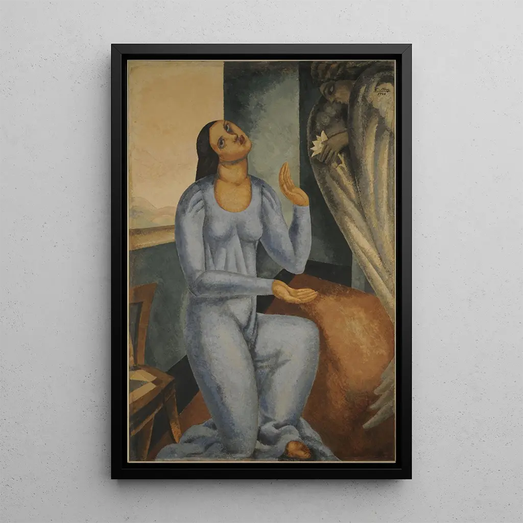 Annonciation : eine Szene göttlicher Offenbarung L'Annonciation von Alfredo Guttero ist ein Werk, das den heiligen Moment einfängt, in dem der Engel Gabriel der Jungfrau Maria verkündet, dass sie den Sohn Gottes empfangen wird. Die Komposition ist geprägt von sanften, leuchtenden Farben, die eine Atmosphäre von Gelassenheit und Geheimnis schaffen. Die Figuren sind zart stilisiert, und das Licht scheint aus der Szene selbst zu strahlen, die Figuren in eine göttliche Aura hüllend. Guttero verwendet Maltechniken, die Realismus und Abstraktion verbinden, wodurch das Werk sowohl zugänglich als auch tief spirituell wirkt. Dieses Gemälde lädt zur Kontemplation und Reflexion über Glauben und göttliche Vorsehung ein. Alfredo Guttero: ein Meister des argentinischen Symbolismus Alfredo Guttero, geboren 1882 in Argentinien, ist ein Künstler, dessen Werk im symbolistischen Bewegung des frühen 20. Jahrhunderts verankert ist. Beeinflusst von europäischen Strömungen und lokalen künstlerischen Traditionen, entwickelt er einen einzigartigen Stil, der mystische Elemente und Alltagsrealitäten verbindet. Guttero war ein Pionier in der Erforschung religiöser und spiritueller Themen und suchte, universelle Wahrheiten durch seine Werke auszudrücken. Seine Bedeutung in der argentinischen Kunst ist unbestreitbar, da er das Wesen seiner Zeit einfing und gleichzeitig seinen kulturellen Wurzeln treu blieb. Eine dekorative Anschaffung mit vielfältigen Vorzügen Der kunstdruck der Annonciation ist ein dekoratives Stück, das jeden Raum bereichern kann, sei es ein Wohnzimmer, ein Büro oder ein Schlafzimmer. Seine Druckqualität und die Treue zu den Originalfarben machen dieses Bild zu einer idealen Wahl für alle, die ihrem Interieur einen Hauch von Eleganz und Spiritualität verleihen möchten. Die ästhetische Anziehungskraft dieses Werks liegt in seiner Fähigkeit, Emotionen hervorzurufen und zur Meditation einzuladen, während es sich harmonisch in verschiedene Einrichtungsstile integriert. Gönnen Sie sich diesen kunstdruck, um Ihren Raum in einen Ort des Friedens und der Schönheit zu verwandeln.