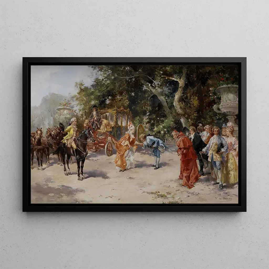 Das Werk "L'Arrivée" von Vicente García De Paredes fängt die Lebendigkeit einer Hafen-Szene meisterhaft ein. Die leuchtenden Farben und die dynamischen Pinselstriche verleihen diesem Kunstdruck eine spürbare Energie. Die weißen Segel der Boote kontrastieren mit dem tiefblauen Meer, während der Himmel, übersät mit Wolken, eine dramatische Dimension hinzufügt. Die Komposition, zentriert auf die Interaktion zwischen den Figuren und ihrer Umgebung, evoziert eine Atmosphäre von Bewegung und Erwartung. Jedes Detail, von den Reflexionen auf dem Wasser bis zu den Gesichtsausdrücken der Seeleute, trägt dazu bei, eine vollständige Immersion in diesen Moment des Lebens zu schaffen.