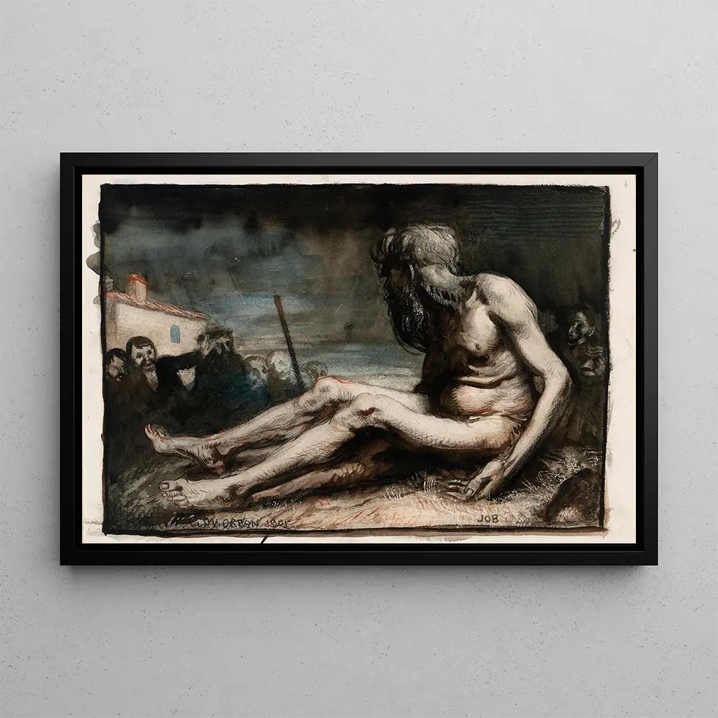Job auf dem Mist: eine Szene von Arbeit und Widerstandskraft In "Job auf dem Mist" fängt William Orpen einen Moment des Alltagslebens mit eindringlicher Intensität ein. Das Gemälde zeigt einen Mann bei der Arbeit, umgeben von Mist, in einer erdigen Farbpalette, die die Härte des Landlebens evoziert. Licht- und Schatteneffekte verleihen der Komposition eine dramatische Dimension und unterstreichen die Erschöpfung und Entschlossenheit der Figur. Orpen verwendet eine realistische Technik, die es dem Betrachter ermöglicht, die körperliche Anstrengung und die emotionale Hingabe dieses Arbeiters zu spüren, wodurch eine banale Szene zu einem bedeutungsvollen Kunstwerk wird. William Orpen: ein Zeuge seiner Zeit William Orpen, irischer Maler, der Anfang des 20. Jahrhunderts aktiv war, ist bekannt für seine Porträts und Szenen des Alltagslebens. Beeinflusst vom Impressionismus, entwickelte er einen einzigartigen Stil, der Realismus und Sensibilität verbindet. Orpen war auch ein visueller Chronist des Ersten Weltkriegs, was sein Werk tief prägte. "Job auf dem Mist" ist Teil einer Epoche, in der die Kunst versuchte, die soziale Wahrheit darzustellen, und Orpen, mit seinem scharfen Blick, konnte Momente des gewöhnlichen Lebens festhalten und so die Bedeutung der manuellen Arbeit in der Gesellschaft seiner Zeit dokumentieren. Eine dekorative Anschaffung mit vielfältigen Vorzügen Diese kunstdruck-Reproduktion von "Job auf dem Mist" ist ein dekoratives Stück, das Ihr Zuhause bereichern wird, sei es im Wohnzimmer, Büro oder Schlafzimmer. Die Druckqualität garantiert eine bemerkenswerte Farbtreue und Detailgenauigkeit des Originalwerks, sodass die Atmosphäre, die das Gemälde ausstrahlt, voll zur Geltung kommt. Seine ästhetische Anziehungskraft, die Realismus und Emotion verbindet, macht es zur idealen Wahl für alle, die ihrer Dekoration eine authentische Note verleihen möchten. Durch die Integration dieses Bildes in Ihren Raum laden Sie nicht nur Kunst in Ihren Alltag ein, sondern regen auch zum Nachdenken über Arbeit und Leben an.