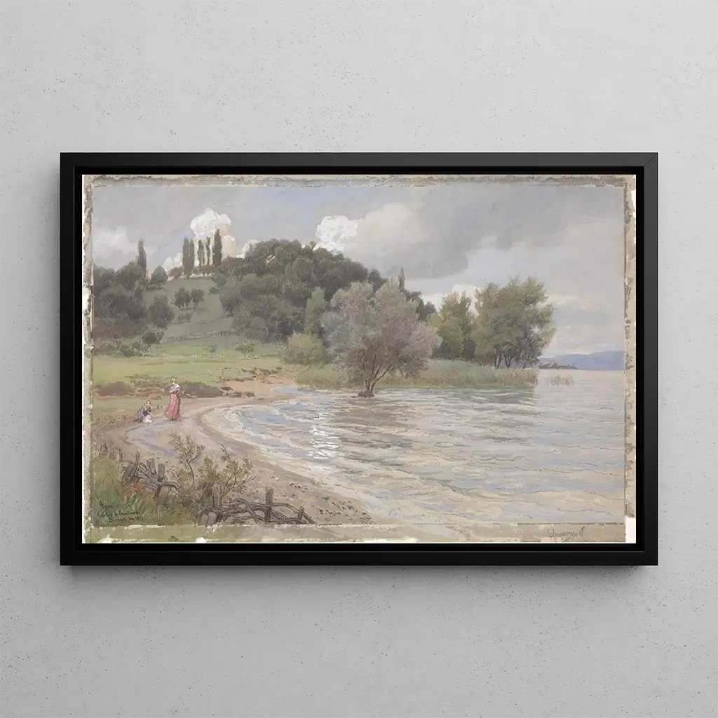 In diesem Werk fängt Hans Gude die ruhige Schönheit des Bodensees ein und umhüllt den Betrachter mit einer Atmosphäre von Frieden und Kontemplation. Die Nuancen von Blau und Grün verschmelzen harmonisch und erinnern an die Reflexionen des Wassers und die umliegende Vegetation. Die sorgfältig ausbalancierte Komposition lädt zu einem visuellen Spaziergang entlang der ruhigen Ufer ein, wobei jedes Detail, von weißen Segeln bis zu majestätischen Bäumen, den Eindruck von Lebendigkeit vermittelt. Gudes Technik, geprägt von beeindruckendem Realismus, schafft eine vollständige Immersion in diese idyllische Landschaft und macht diesen kunstdruck zu einem echten Gemälde zum Bewundern.
