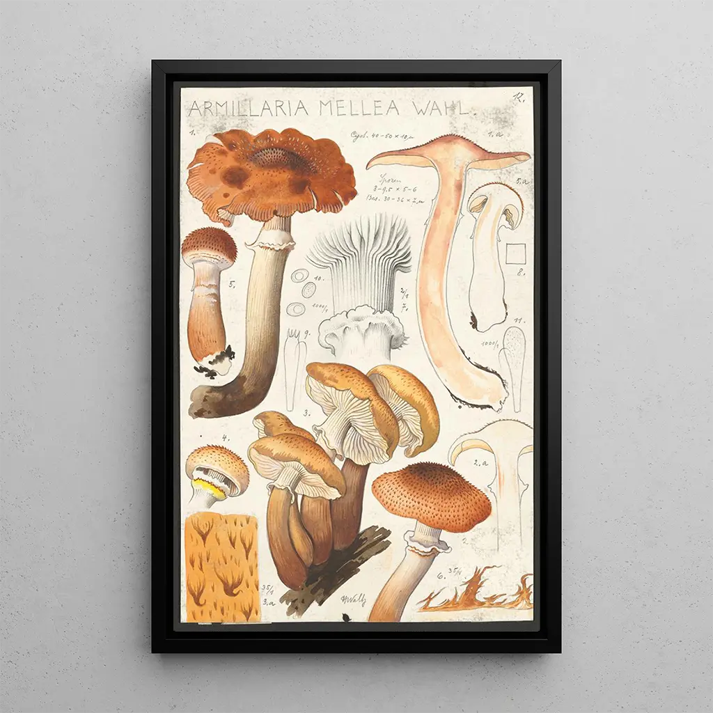 Armillare Farbe von Honig Wahl: eine Hommage an die faszinierende Natur Das Werk "Armillare Farbe von Honig Wahl" von Hans Baldung, einem berühmten Maler der deutschen Renaissance, evoziert eine organische Schönheit durch warme, goldene Töne. Die Komposition, zentriert auf einen Pilz mit Honignuancen, zieht den Blick auf sich und lädt zu einer Erkundung der detaillierten Feinheiten ein. Das Spiel von Licht und Schatten schafft eine fast mystische Atmosphäre, in der die Natur zum Leben erwacht. Die Technik von Baldung, die Realismus und Stilisation verbindet, ermöglicht es, die Textur des Pilzes zu spüren, während der verschwommene Hintergrund die Präsenz des Hauptobjekts betont und es fast greifbar macht. Hans Baldung: ein Meister der deutschen Renaissance Hans Baldung, aktiv zu Beginn des 16. Jahrhunderts, ist bekannt für seinen mutigen Stil und seine oft natur- und mythologiebezogenen Themen. Schüler Dürers, entwickelte er einen einzigartigen Ansatz, der symbolische Elemente und eine lebendige Farbpalette integriert. Seine Werke, oft voller Emotionen, spiegeln die Anliegen seiner Zeit wider, die von einem wachsenden Interesse an der natürlichen Welt und den Mysterien der Existenz geprägt ist. Baldung wurde auch vom Humanismus beeinflusst, was ihn dazu führte, vielfältige Themen zu erforschen, von Porträts bis hin zu Darstellungen der Natur, wie diese Kunstdruck-Reproduktion des Gemäldes "Armillare Farbe von Honig Wahl" zeigt. Eine dekorative Anschaffung mit vielfältigen Vorteilen Die Reproduktion von "Armillare Farbe von Honig Wahl" ist ein dekoratives Stück, das perfekt ist, um Ihr Zuhause zu bereichern, sei es im Wohnzimmer, im Büro oder im Schlafzimmer. Die Druckqualität und die Treue zu den Originalfarben garantieren eine unbestreitbare ästhetische Anziehungskraft. Dieses Bild, mit seiner warmen und organischen Atmosphäre, bringt einen Hauch Natur in Ihren Raum und fördert eine beruhigende und inspirierende Stimmung. Mit dieser Leinwand entscheiden Sie sich für ein Kunstwerk, das nicht nur Ihre Dekoration verschönert, sondern auch Gespräche über Kunst und Natur anregt.