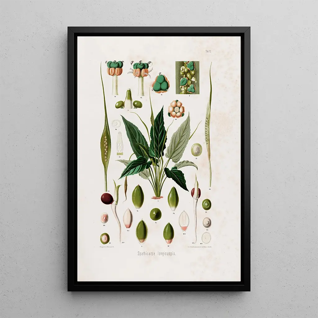 Aroideae Maximilianae Pl12 : eine Hommage an die pflanzliche Vielfalt Das Werk "Aroideae Maximilianae Pl12" von Heinrich Wilhelm Schott ist eine Feier des Reichtums und der Vielfalt der pflanzlichen Welt. Diese botanische Illustration, von großer Feinheit, hebt die einzigartigen Merkmale der Pflanze Aroideae hervor. Die leuchtenden Farbtöne und die detaillierten Darstellungen der Blätter und Blüten schaffen eine lebendige und dynamische Atmosphäre. Die Gravurtechnik, die Schott meisterhaft beherrscht, ermöglicht es, jede Nuance und Textur mit einer Präzision wiederzugeben, die das Auge anzieht und die Fantasie anregt, und den Betrachter in einen üppigen Garten entführt. Heinrich Wilhelm Schott : ein Künstler im Dienste der Wissenschaft Heinrich Wilhelm Schott, geboren 1794, ist ein deutscher Botaniker und Illustrationskünstler, dessen Werk das 19. Jahrhundert prägte. Spezialist für tropische Pflanzen, verstand er es, seine Liebe zur Natur mit einer wissenschaftlich rigorosen Herangehensweise zu verbinden. Seine Illustrationen, insbesondere die der Aroideae, sind bekannt für ihre Präzision und Schönheit und tragen zur Klassifikation der pflanzlichen Arten bei. Schott wurde auch von den botanischen Expeditionen seiner Zeit beeinflusst, was seine Arbeit bereicherte und ihm ermöglichte, das Wesen der Pflanzen mit einer seltenen künstlerischen Sensibilität einzufangen. Eine dekorative Anschaffung mit vielfältigen Vorzügen Die reproduction von "Aroideae Maximilianae Pl12" ist eine ideale dekorative Wahl für alle, die ihrer Einrichtung einen Hauch Natur verleihen möchten. Ob im Wohnzimmer, im Büro oder im Schlafzimmer, dieses Leinwandbild fügt sich harmonisch in verschiedene Einrichtungsstile ein. Die Druckqualität garantiert eine detailgetreue Wiedergabe des Originals und bietet gleichzeitig eine unbestreitbare ästhetische Anziehungskraft. Mit diesem Werk fügen Sie Ihrer Sammlung ein einzigartiges Stück hinzu und feiern gleichzeitig die Schönheit und Vielfalt der pflanzlichen Welt, wodurch ein inspirierender und beruhigender Raum entsteht.