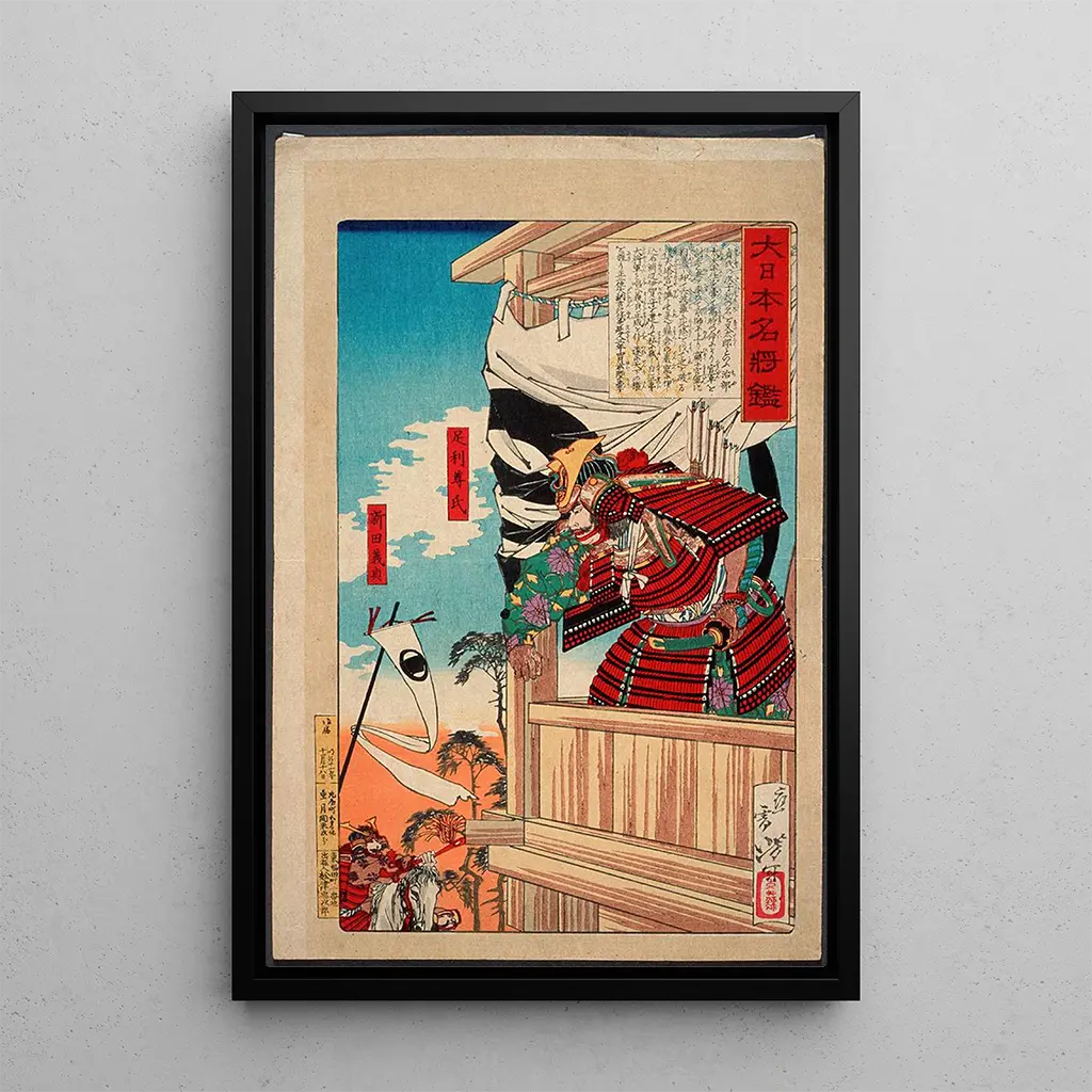 In diesem beeindruckenden Kunstwerk stellt Tsukioka Yoshitoshi einen Schlüsselmoment der japanischen Geschichte dar, bei dem die ikonischen Figuren von Ashikaga Takauji und Nitta Yoshisada aufeinandertreffen. Die dynamische Komposition und die lebendigen Farben vermitteln die Spannung und Intensität des Kampfes. Die detaillierten Rüstungen und Gesichtsausdrücke der Figuren tauchen den Betrachter in diese historische Szene, in der Tapferkeit und Schicksal aufeinandertreffen. Yoshitoshi, mit seinem Talent, Bewegung einzufangen, macht diesen Kunstdruck zu einem lebendigen Gemälde, in dem jedes Element eine Geschichte erzählt.