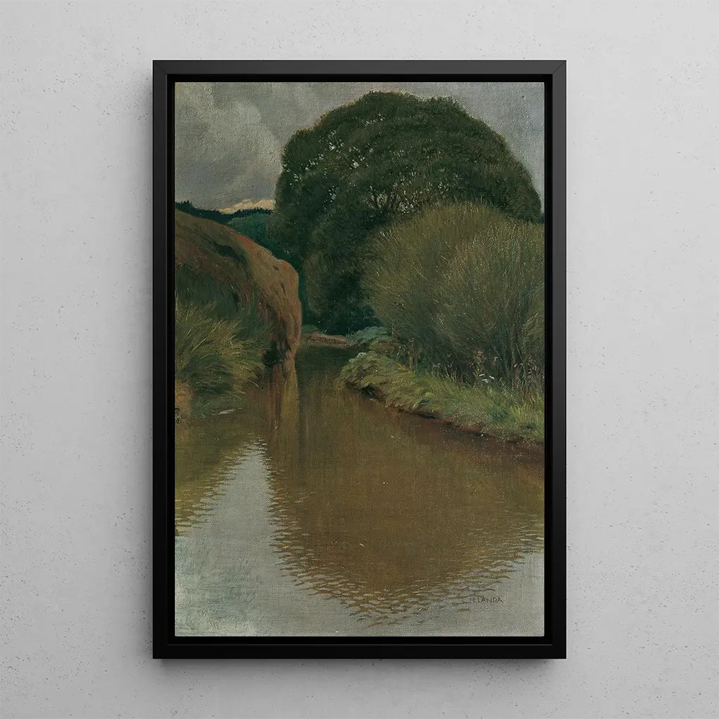 Hubert Landa, Künstler des 19. Jahrhunderts, ist bekannt für seine Fähigkeit, die natürliche Schönheit durch einen romantischen Blickwinkel einzufangen. Beeinflusst von den großen Meistern der Landschaft, hat er einen Stil entwickelt, der Realismus und Poesie vereint. Landa hat in seinen Werken häufig Flüsse und Seen erkundet, was seine Verbundenheit mit der Natur und der Ruhe, die sie bietet, bezeugt. Seine Arbeit gehört zu einer Zeit, in der die romantische Kunst danach strebte, tiefe Emotionen und eine spirituelle Verbindung zur natürlichen Welt auszudrücken, was ihn zu einer bedeutenden Figur seiner Epoche macht.