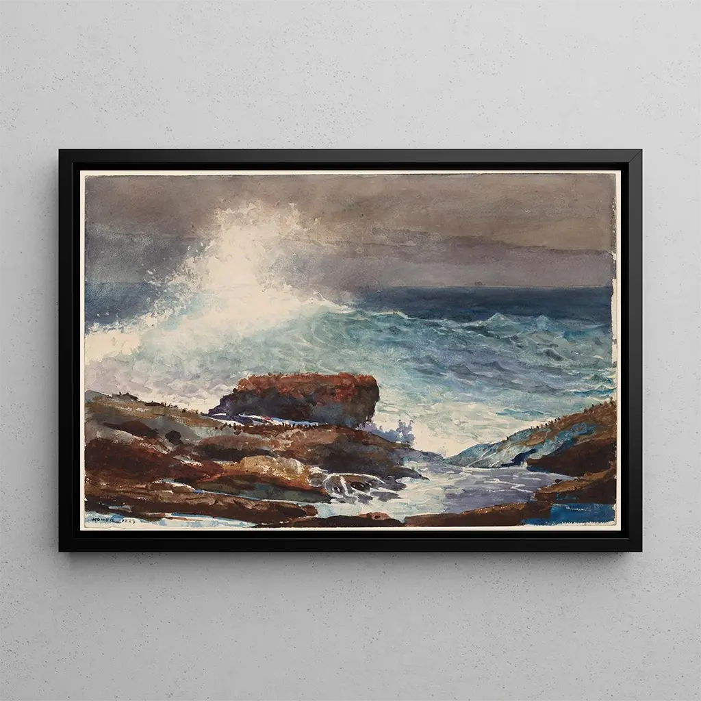 Marée Montante à Scarboro, Maine : eine Umarmung zwischen Meer und Himmel In "Marée Montante à Scarboro, Maine" fängt Winslow Homer die Essenz der Natur in Bewegung ein. Dieses Kunstwerk, von einer spürbaren emotionalen Intensität, zeigt ein stürmisches Meer, in dem die Wellen mit Kraft gegen die Felsen schlagen. Die lebendigen Farben, die von tiefem Blau bis zu leuchtendem Grün reichen, schaffen eine Atmosphäre, die sowohl dramatisch als auch beruhigend ist. Die Aquarelltechnik, meisterhaft beherrscht von Homer, ermöglicht es, die Flüssigkeit des Wassers und die Helligkeit des Himmels wiederzugeben, und lädt so zur Betrachtung der natürlichen Kräfte ein. Das Werk vermittelt eine intime Verbindung zwischen Mensch und Umwelt, ein Thema, das dem Künstler am Herzen liegt. Winslow Homer: ein Pionier der amerikanischen Kunst Winslow Homer, geboren 1836, gilt oft als einer der größten amerikanischen Maler des 19. Jahrhunderts. Beeinflusst von der realistischen Bewegung und der amerikanischen Landschaftsmalerei, konnte er die rohe Schönheit der Natur und das tägliche Leben der Menschen einfangen. Seine Karriere begann als Illustrator, doch er entwickelte sich rasch zur Malerei weiter, wobei er maritime Themen und Szenen des Landlebens erforschte. "Marée Montante à Scarboro, Maine" ist Teil einer Phase, in der die amerikanische Kunst versuchte, sich zu definieren, fernab europäischer Einflüsse. Das Werk zeugt von seinem Engagement für eine authentische Darstellung von Natur und Leben und festigt so sein künstlerisches Erbe. Eine dekorative Reproduktion mit vielfältigen Vorzügen Die Reproduktion von "Marée Montante à Scarboro, Maine" ist eine ideale Wahl, um Ihr Zuhause zu verschönern, sei es im Wohnzimmer, im Büro oder im Schlafzimmer. Die Druckqualität garantiert eine beeindruckende Farbtreue und Detailgenauigkeit des Originalwerks, sodass die ganze Kraft des Meeres spürbar wird. Dieses Bild bringt eine Note von Gelassenheit und Dynamik, und ist gleichzeitig ein faszinierendes Gesprächsthema. Mit seiner unbestreitbaren ästhetischen Anziehungskraft fügt sich dieses Leinwandbild harmonisch in verschiedene Einrichtungsstile ein und ist eine wertvolle Ergänzung Ihrer Kunstsammlung.