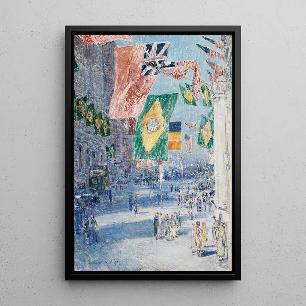 Avenue des Alliés Brasilien Belgien: eine Feier des Lichts und der Farbe In diesem lebendigen Werk entführt uns Childe Hassam auf die Avenue des Alliés, wo leuchtende Farben sich mit einem sanften, umhüllenden Licht vermischen. Die Pinselstriche, sowohl zart als auch mutig, schaffen eine festliche und freudige Atmosphäre. Die Bäume, die die Straße säumen und mit einer Palette aus Grün- und Gelbtönen gemalt sind, stehen im Kontrast zu den Blautönen des Himmels, während die Pflastersteine der Straße unter dem Einfluss des Lichts zu vibrieren scheinen. Diese kunstdruck-Reproduktion erinnert an einen sommerlichen Spaziergang, bei dem jedes Detail eine Einladung zur Betrachtung und zum Staunen ist. Childe Hassam: ein Meister des amerikanischen Impressionismus Childe Hassam, eine ikonische Figur des amerikanischen Impressionismus, konnte die Essenz von Licht und Farbe während seiner gesamten Karriere einfangen. Geboren 1859 in Boston, wurde er von den großen europäischen Meistern beeinflusst, entwickelte aber einen einzigartigen Stil, der das Amerika seiner Zeit widerspiegelt. Seine Werke, oft inspiriert vom Stadtleben und den amerikanischen Landschaften, zeugen von einer besonderen Sensibilität für die Variationen des Lichts. Hassam war auch ein Pionier der amerikanischen Flaggenbewegung und integrierte patriotische Elemente in seine Gemälde, was seine Bedeutung in der Kunstgeschichte unterstreicht. Eine dekorative Anschaffung mit vielfältigen Vorzügen Diese kunstdruck-Reproduktion der Avenue des Alliés ist ein ideales Dekorationsstück für jeden Raum, sei es ein Wohnzimmer, ein Büro oder ein Schlafzimmer. Ihre Druckqualität und die Treue zu den Originalfarben machen sie zu einer attraktiven Wahl für Kunstliebhaber und Inneneinrichter. Durch das Hinzufügen dieses Leinwandbildes zu Ihrer Sammlung bringen Sie einen Hauch von Eleganz und Dynamik in Ihre Dekoration. Das Werk von Hassam, mit seiner fröhlichen und leuchtenden Atmosphäre, wird Ihre Gäste begeistern und eine warme, einladende Stimmung schaffen.