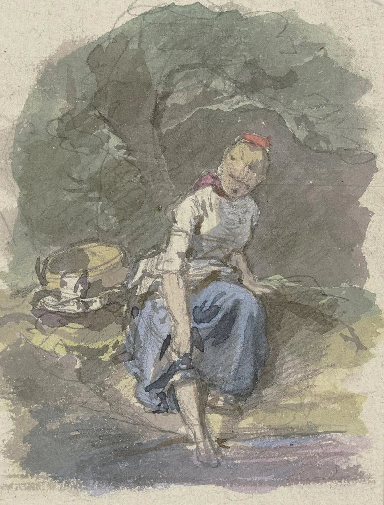 Sitzende Bäuerin im Wald - Jakob Becker