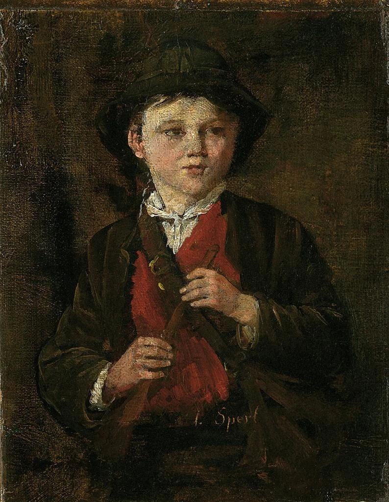 Bayerischer Landjunge mit Flöte - Johann Sperl Source: Garçon de paysan bavarois avec flûte - Johann Sperl