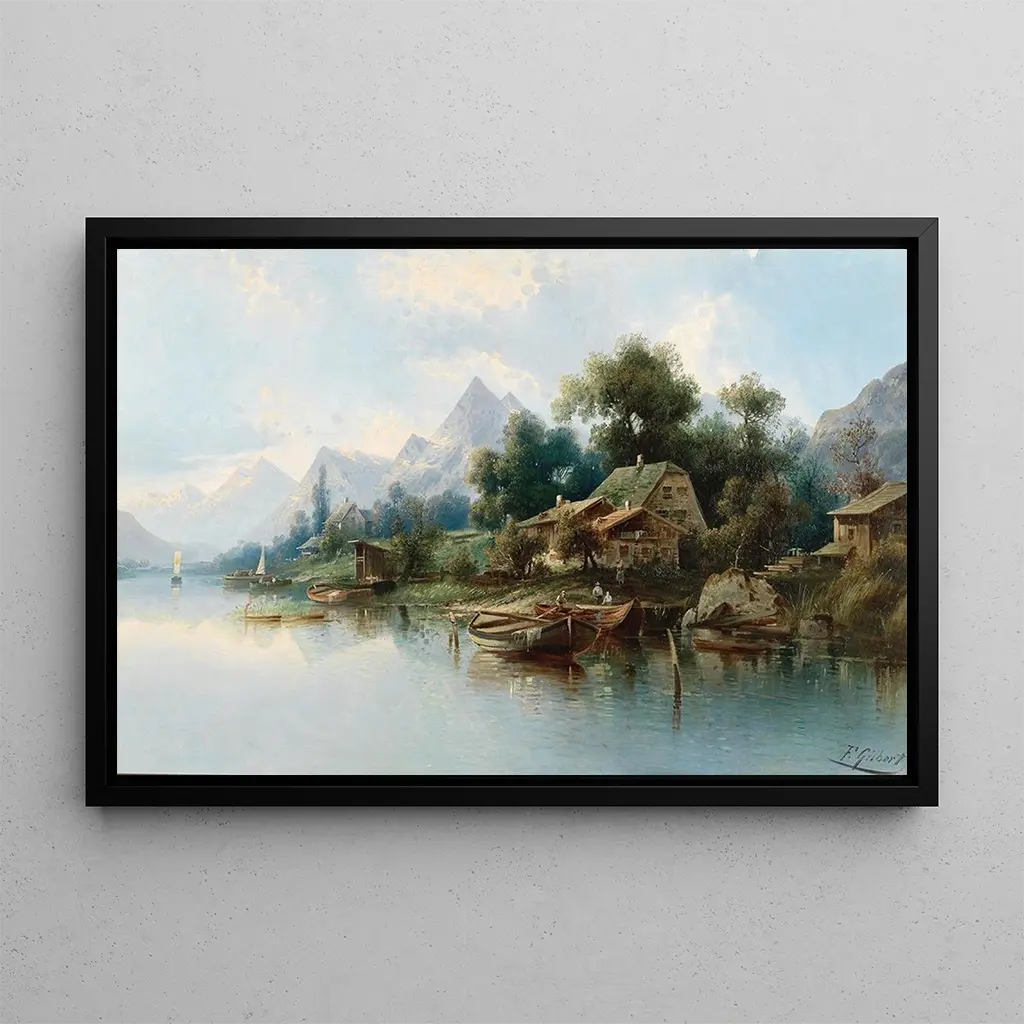 Karl Kaufmann, aktiv im 19. Jahrhundert, ist ein Künstler, dessen Werke die Schönheit der natürlichen Landschaften feiern. Beeinflusst von der romantischen Bewegung, hat er die Erhabenheit der Berge und die Gelassenheit der Seen mit besonderer Sensibilität eingefangen. Seine Gemälde spiegeln eine Epoche wider, in der die Erforschung der Natur auf ihrem Höhepunkt war, und Kaufmann hat sich als Meister in der Darstellung dieser bezaubernden Landschaften etabliert. Sein Stil, gekennzeichnet durch flüssige Pinselstriche und eine reiche Farbpalette, zeugt von seiner Liebe zur Natur und seinem Wunsch, Emotionen durch seine Werke zu vermitteln.