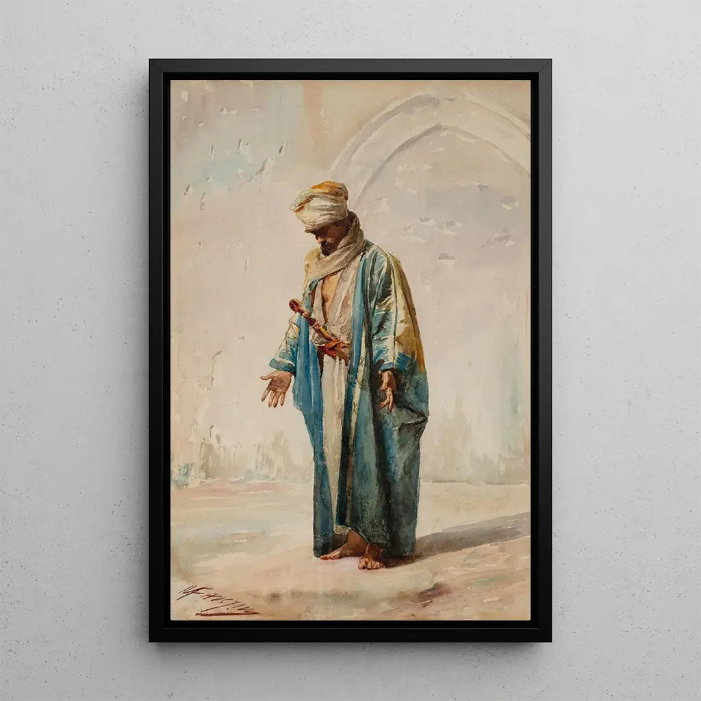 In Gebet: eine Ode an die Spiritualität Die reproduction des Gemäldes In Gebet fängt einen Moment intensiver Andacht ein, bei dem die zentrale Figur in tiefe Meditation versunken zu sein scheint. Die warmen, erdigen Farben umhüllen die Szene mit einer ruhigen Atmosphäre, während die zarten Details der Kleidung und der gefalteten Hände eine menschliche Dimension hinzufügen. Die malerische Technik, wahrscheinlich Öl, verleiht den Texturen Tiefe und Reichtum, sodass jeder Pinselstrich bedeutungsvoll ist. Dieses Gemälde lädt zur Kontemplation ein, zur Suche nach innerem Frieden und spiritueller Verbindung. Modesto Faustini: ein Meister des religiösen Realismus Modesto Faustini, Künstler des 19. Jahrhunderts, ist bekannt für seine Werke voller Spiritualität und Hingabe. In einer Zeit, in der der Realismus an Bedeutung gewann, verstand er es, eine raffinierte Technik mit tief in der christlichen Glaubenswelt verwurzelten Themen zu verbinden. Beeinflusst von den großen Meistern der Renaissance, entwickelte Faustini einen einzigartigen Stil, der menschliche Emotionen durch religiöse Darstellungen hervorhebt. In Gebet ist eines seiner ikonischen Gemälde und zeigt sein Talent, Momente der Gnade und spirituellen Intimität einzufangen. Eine dekorative Anschaffung mit vielfältigen Vorteilen Die reproduction des Gemäldes In Gebet ist eine bereichernde dekorative Wahl für Ihr Zuhause, sei es im Wohnzimmer, Büro oder Schlafzimmer. Seine beruhigende und inspirierende Präsenz bringt eine Note der Gelassenheit in jeden Raum und fördert eine Atmosphäre der Reflexion. Die Qualität der reproduction garantiert eine Treue zu den Nuancen und Details des Originalwerks, sodass Sie seine ästhetische Anziehungskraft voll genießen können. Durch die Integration dieses Leinwandbildes in Ihre Dekoration schaffen Sie eine Umgebung, die zu Frieden und Kontemplation einlädt, und verleihen Ihrem Interieur gleichzeitig eine elegante Note.