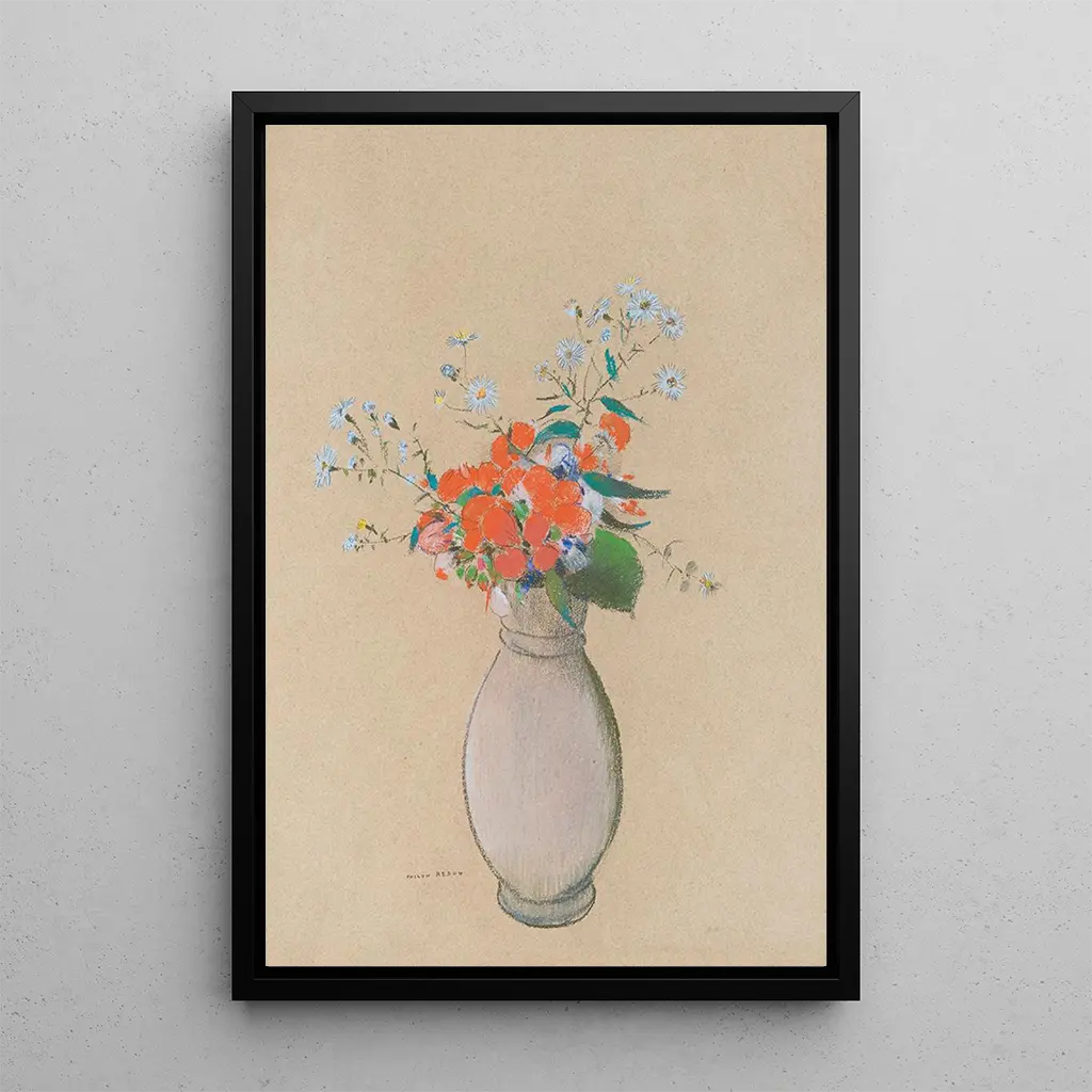 Blumenvasen: eine florale Flucht in eine traumhafte Welt Das Gemälde "Blumenvasen" von Odilon Redon ist ein Werk, das zur Flucht einlädt. Die lebendigen Farben und die zarten Formen der Blumen scheinen auf der Leinwand zu tanzen und schaffen eine Atmosphäre, die sowohl beruhigend als auch geheimnisvoll ist. Redon verwendet eine Ölmaltechnik, die die Helligkeit der Farbtöne betont und jedem Blütenblatt und Blatt Leben einhaucht. Der dunkle Hintergrund hebt die Farbvielfalt hervor, während die harmonische Komposition ein Gefühl der Gelassenheit vermittelt. Dieses Gemälde, sowohl einfach als auch komplex, taucht uns in eine Welt ein, in der Natur und Fantasie aufeinandertreffen. Odilon Redon: ein Pionier des Symbolismus Odilon Redon, eine ikonische Figur der symbolistischen Bewegung, hat das Wesen der Fantasie durch seine Werke eingefangen. Geboren 1840 in Bordeaux, wurde er von den künstlerischen Strömungen seiner Zeit beeinflusst, insbesondere vom Romantizismus und Impressionismus. Redon begann seine Karriere als Lithograf, bevor er sich der Malerei zuwandte und Themen rund um Träume und Visionen erforschte. Seine Arbeit, oft von Geheimnissen durchdrungen, hat den Weg für viele zeitgenössische Künstler geebnet und die Kunstgeschichte durch seinen einzigartigen Ansatz von Farbe und Form geprägt. "Blumenvasen" ist ein perfektes Beispiel für seinen unverwechselbaren Stil. Eine dekorative Reproduktion mit vielfältigen Vorzügen Die Reproduktion des "Blumenvasen" von Odilon Redon ist ein ideales Dekorationsstück, um Ihr Zuhause zu bereichern. Ob im Wohnzimmer, im Büro oder im Schlafzimmer, dieses Kunstwerk verleiht Eleganz und Poesie. Die Druckqualität garantiert eine bemerkenswerte Farbtreue und Detailgenauigkeit des Originalwerks, verbunden mit einer unverkennbaren ästhetischen Anziehungskraft. Mit dieser Leinwand verschönern Sie nicht nur Ihren Raum, sondern laden auch einen Teil von Redons traumhafter Welt in Ihren Alltag ein. Es ist ein Werk, das Kunstliebhaber und Dekorationsbegeisterte gleichermaßen begeistern wird.