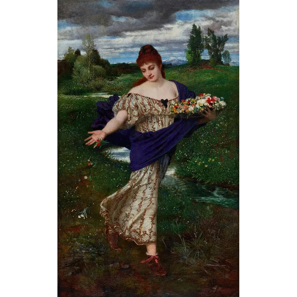 Flore dispersant des fleurs : eine Ode an Fruchtbarkeit und Leben In "Flore dispersant des fleurs" bietet Arnold Böcklin eine poetische Vision der Göttin der Flora, die die Schönheit und Großzügigkeit der Natur verkörpert. Die pastellfarbenen, sanften und leuchtenden Töne erinnern an einen ewigen Frühling, während die zentrale Figur, umgeben von strahlenden Blumen, scheinbar anmutig tanzt. Die Technik Böcklins, die Realismus und mythologische Elemente verbindet, schafft eine leichte und fröhliche Atmosphäre. Jedes Blütenblatt, jede Bewegung ist eine Einladung, das Leben und die Schönheit zu feiern, was dieses Werk zu einer wahren Feier der Natur und ihrer Fülle macht. Arnold Böcklin: ein Visionär des Symbolismus und der Mythologie Arnold Böcklin, eine ikonische Figur des 19. Jahrhunderts, prägte die Kunstgeschichte durch seinen einzigartigen Ansatz des Symbolismus. Beeinflusst von Romantik und alten Legenden, schuf er Werke, die die Seele ansprechen. "Flore dispersant des fleurs" spiegelt sein Interesse an den Themen Natur und Mythologie wider, wiederkehrende Motive in seinem Schaffen. Durch seine Gemälde erforscht Böcklin tiefgründige Konzepte wie Leben, Tod und Wiedergeburt, was ihn zu einem Vorläufer der modernen Kunst macht. Sein künstlerisches Erbe inspiriert weiterhin zahlreiche Künstler und Kunstliebhaber weltweit. Eine dekorative Anschaffung mit vielfältigen Vorzügen Der kunstdruck von "Flore dispersant des fleurs" von Arnold Böcklin ist eine wertvolle Ergänzung jeder Kunstsammlung. Ob zur Verschönerung eines Wohnzimmers, Büros oder Schlafzimmers, dieses Bild bringt Frische und Vitalität in Ihr Zuhause. Seine Druckqualität und die Treue zu den Originaldetails garantieren eine außergewöhnliche Wiedergabe, die Auge und Geist fesselt. Mit diesem Werk verleihen Sie Ihrem Raum eine fröhliche und inspirierende Atmosphäre und würdigen gleichzeitig einen der Meister des Symbolismus. Es ist ein Stück, das alle Ihre Gäste begeistern und ihre Neugier wecken wird.