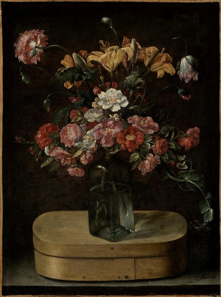Blumenstrauß auf einer Pappschachtel - Jacques Linard