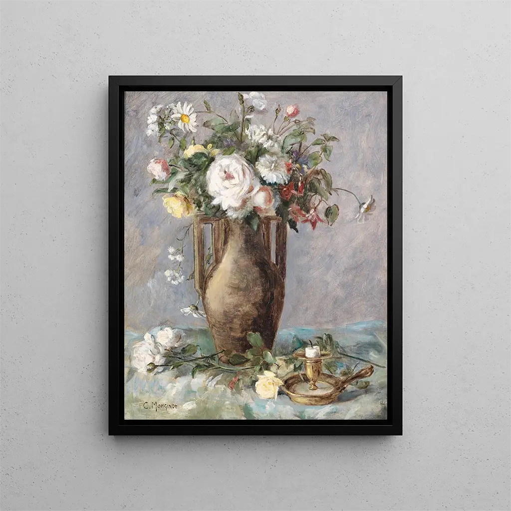 Dans l'univers foisonnant de l'art floral, l'œuvre "Composition florale avec bougeoir" de Charles Monginot se distingue par son élégance et sa délicatesse. Capturant l'essence même de la nature à travers des fleurs éclatantes, cette œuvre se déploie comme une ode à la beauté éphémère. L'artiste parvient à créer une atmosphère intimiste, où chaque pétale semble murmurer des histoires oubliées. La lumière joue un rôle essentiel dans cette composition, illuminant subtilement les formes et les couleurs, invitant le spectateur à s'immerger dans un monde de poésie visuelle. À travers cette kunstdruck, l'essence de l'œuvre originale est préservée, permettant à chacun de savourer la magie de cette création.