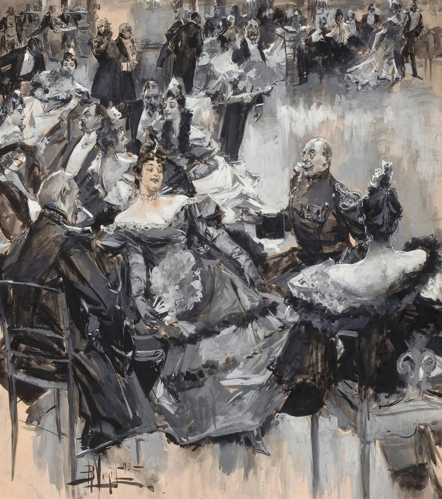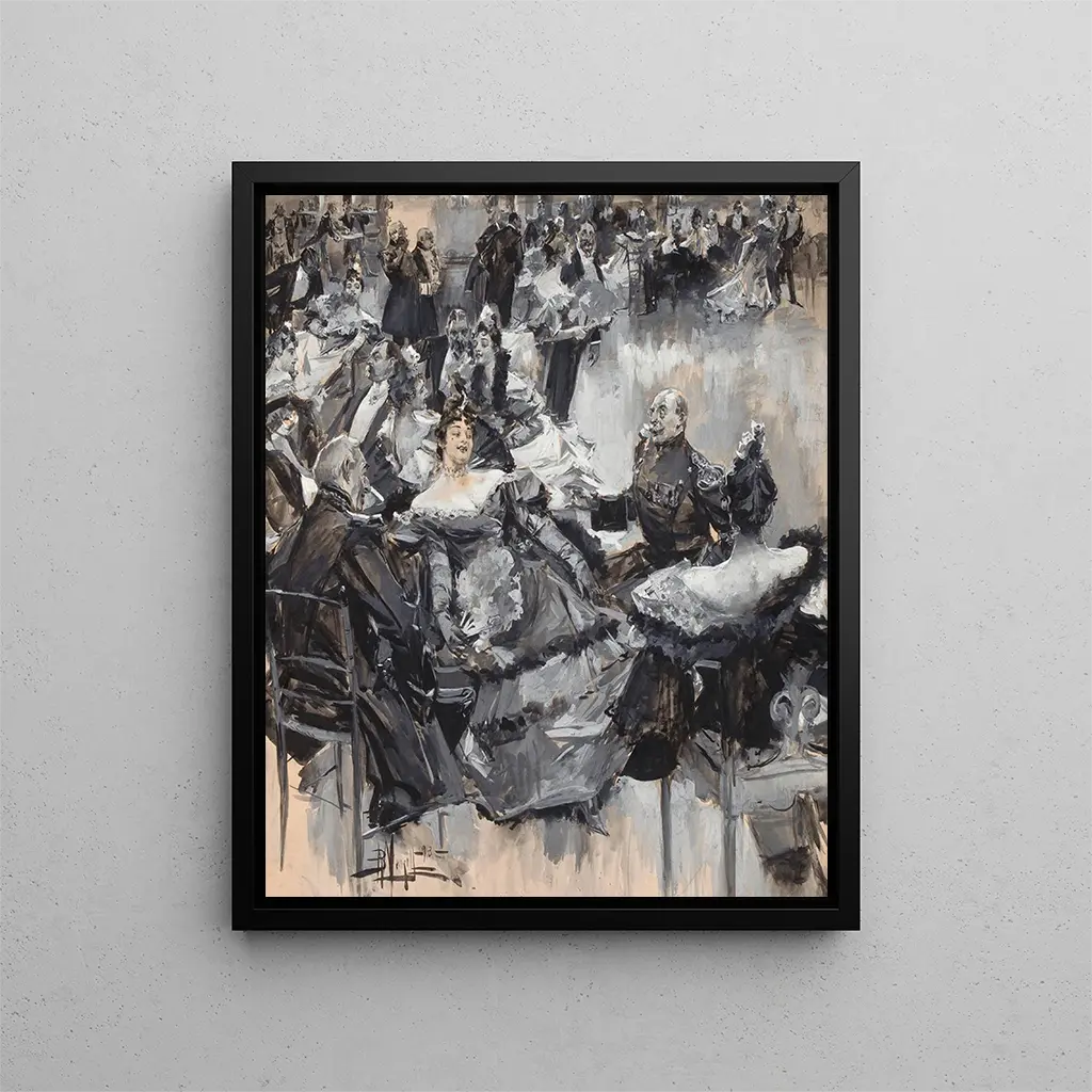 Die Reproduktion des Wiener Botschaftsballs - Albert Beck Wenzell ist viel mehr als ein einfaches Kunstwerk; sie ist eine Einladung, in eine Welt voller Raffinesse und Schönheit einzutauchen. Signiert von Artem Legrand, präsentiert sich dieses Stück als eine Wanddekoration