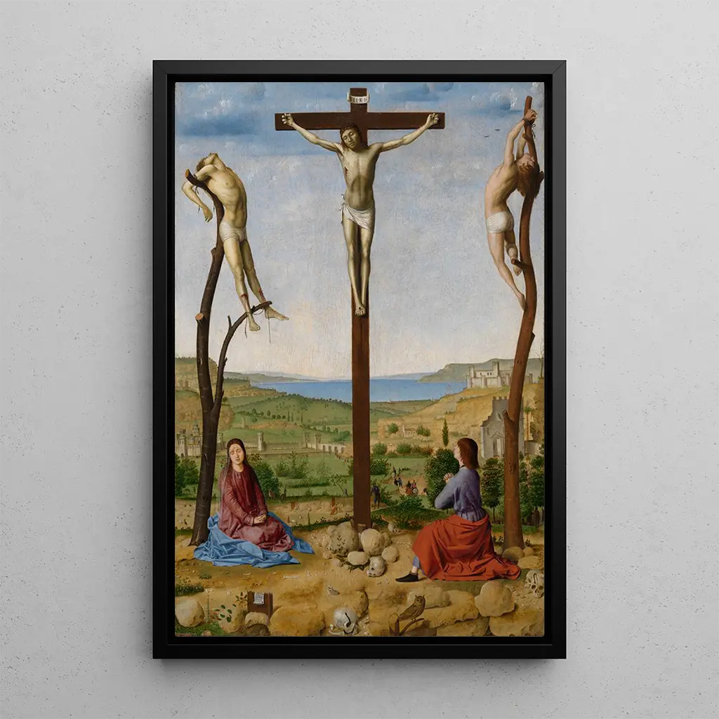 Calvaire : eine Szene des Leidens und der Erlösung Das kalvarie des Antonello da Messina ist ein berührendes Werk, das den tragischen Moment der Kreuzigung einfängt. Die dunklen Farben und die Schattenwürfe schaffen eine Atmosphäre von Spannung und Melancholie. Die Komposition, zentriert um die Figur des Christus, zieht sofort den Blick auf sich, während die detaillierten Gesichter der Figuren im Hintergrund eine emotionale Tiefe hinzufügen. Die Technik des Künstlers, die Realismus und Spiritualität verbindet, lädt zu einer meditativen Betrachtung des menschlichen Leidens und der Suche nach Erlösung ein. Antonello da Messina: ein Meister der italienischen Renaissance Antonello da Messina, aktiv im 15. Jahrhundert, ist bekannt dafür, flämische Maltechniken in Italien eingeführt zu haben, was den Verlauf der Renaissance-Kunst maßgeblich beeinflusste. Seine Beherrschung des Chiaroscuro und seine Aufmerksamkeit für Details machen ihn zu einem Pionier in der Nutzung von Perspektive und Licht. Aus Neapel ausgebildet, wurde er auch von Künstlern wie Jan van Eyck beeinflusst. Seine Werke, oft voller Symbolik, zeugen von einer tiefen Reflexion über die menschliche Bedingung und Spiritualität und machen ihn zu einer unverzichtbaren Figur seiner Zeit. Eine dekorative erung mit vielfältigen Vorzügen Der kunstdruck des Calvaire von Antonello da Messina ist ein Meisterstück für jede Innendekoration. Ob im Wohnzimmer, Büro oder Schlafzimmer, dieses Bild verleiht dem Raum Eleganz und Tiefe. Die Qualität der kunstdruck garantiert eine Treue zu den Originaldetails und ermöglicht es, die ganze Schönheit des Werks zu schätzen. Die ästhetische Anziehungskraft dieses Leinwandbildes macht es zur idealen Wahl für diejenigen, die ihre Umgebung mit einem kunstvollen Werk voller Bedeutung und Emotion bereichern möchten.