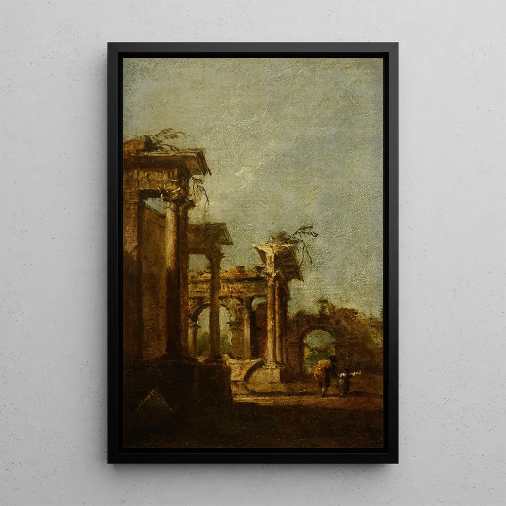 Francesco Guardi, aktiv während der Barockzeit, ist bekannt für seine zentrale Rolle in der Entwicklung der venezianischen Landschaftsmalerei. Als Schüler von Canaletto verstand er es, die Codes der Landschaftsmalerei zu übernehmen und gleichzeitig eine persönliche Sensibilität einzubringen. Sein Werk zeichnet sich durch einen freieren und expressiveren Ansatz aus, bei dem die Emotionen im Vordergrund stehen, weniger die Präzision. Guardi hat es verstanden, das Wesen Venedigs durch seine Werke einzufangen und so viele Künstler der romantischen Epoche beeinflusst. "Caprice" zeugt von seinem einzigartigen Talent und seiner Fähigkeit, das einfache Landschaftsbild zu transzendieren und tiefere Themen zu erforschen.