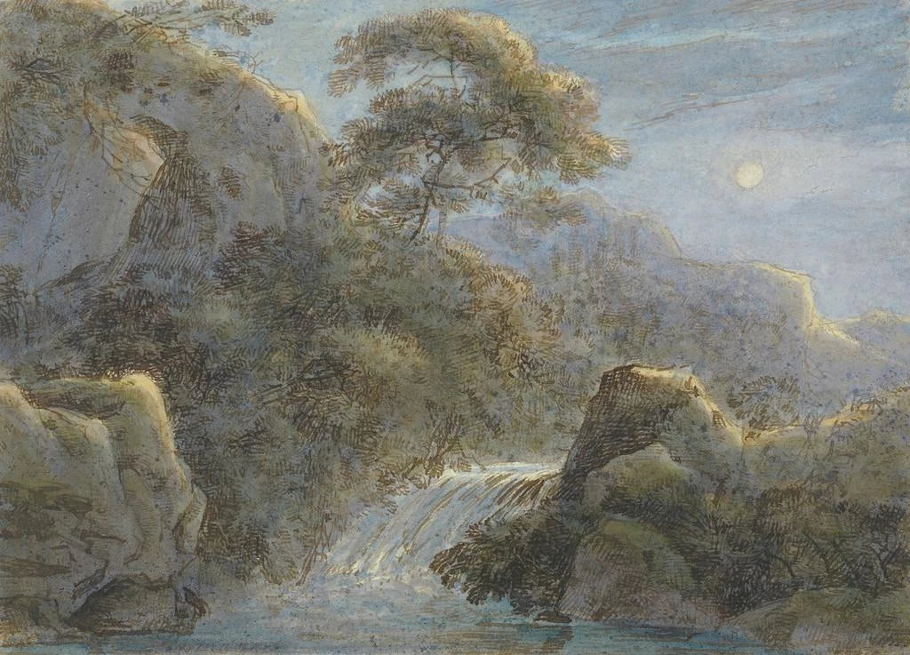 Kaskade in den Bergen im Mondschein - Franz Kobell