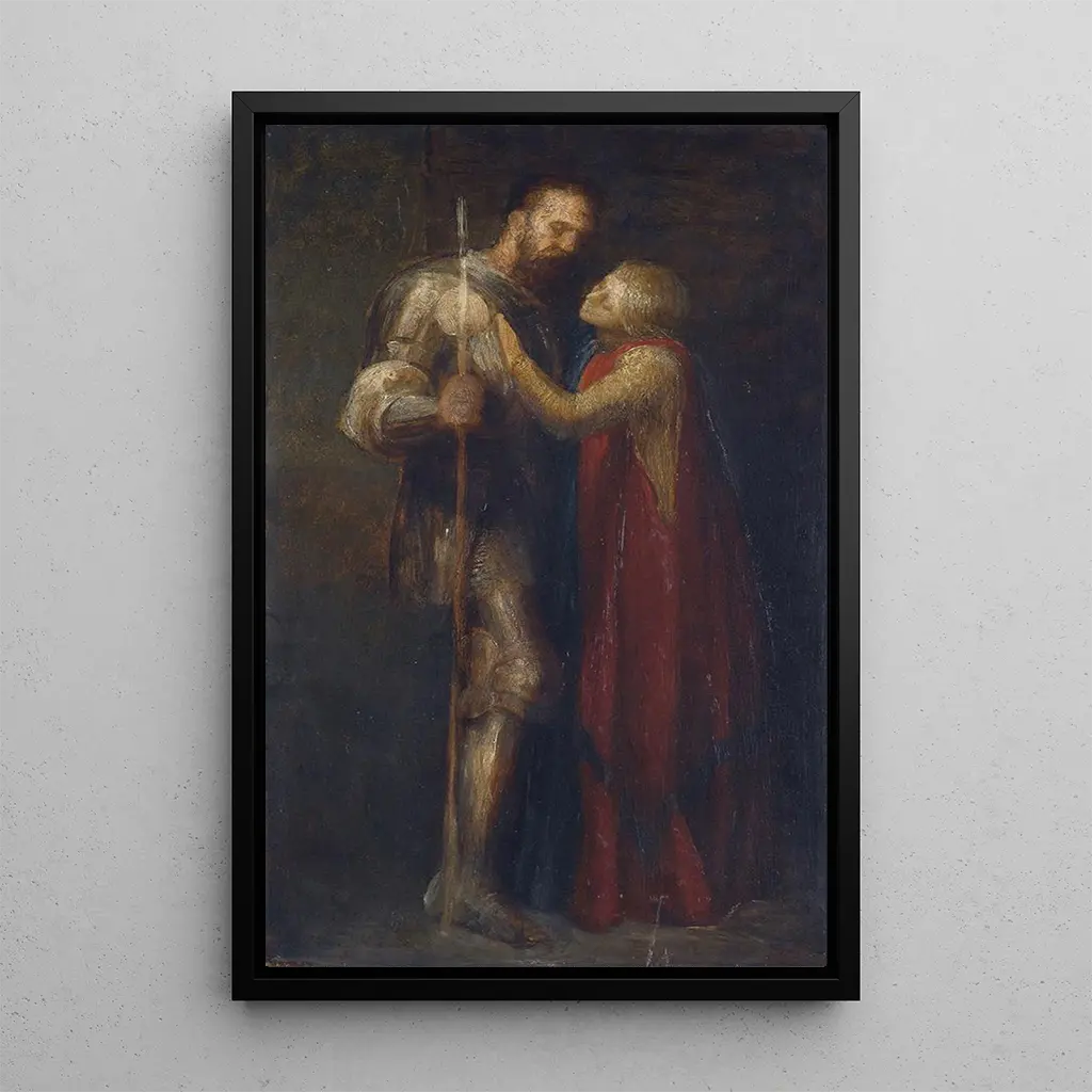 Die reproduction von Chevalier und Demoiselle von George Frederic Watts beschreibt eine zarte Begegnung zwischen zwei ikonischen Figuren des Adels. In diesem Gemälde schaffen die sanften Farben und Pastelltöne eine romantische Atmosphäre, während die Haltung der Figuren ein intimes Gespräch andeutet. Watts verwendet raffinierte Details, um die Eleganz der mittelalterlichen Kostüme einzufangen, und verleiht der Szene eine emotionale Dimension. Das Werk lädt zu einer Reflexion über höfische Liebe und chevaleresque Werte ein und feiert gleichzeitig die Schönheit menschlicher Beziehungen.