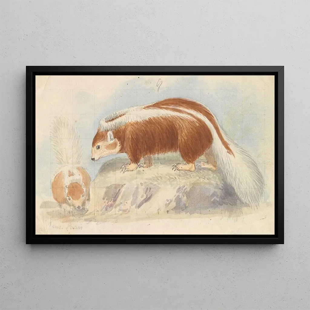 Moufette du Chili : eine faszinierende Arbeit der wilden Natur Die reproduction der Moufette du Chili, geschaffen von Charles Hamilton Smith, taucht uns ein in das fesselnde Univers der südamerikanischen Fauna. Mit lebendigen Farben und detaillierten Feinheiten ruft dieses Gemälde die Schönheit und Einzigartigkeit dieses oft unbekannten Tieres hervor. Die Technik des Künstlers, die Aquarell und Zeichnung verbindet, erweckt die Moufette zum Leben, indem sie ihr gestreiftes Fell und ihren neugierigen Blick einfängt. Die Atmosphäre, die von diesem Werk ausgeht, ist sowohl wild als auch beruhigend und lädt den Betrachter ein, die Vielfalt der Natur zu bewundern. Charles Hamilton Smith : ein Pionier der zoologischen Illustration Charles Hamilton Smith, aktiv im frühen 19. Jahrhundert, gilt als einer der Vorreiter der zoologischen Illustration. Beeinflusst von den Reisen und wissenschaftlichen Entdeckungen seiner Zeit, verstand er es, Kunst und Wissenschaft zu verbinden, um die Fauna mit bemerkenswerter Präzision darzustellen. Seine Werke, oft inspiriert von seinen Erkundungen, zeugen von großer Liebe zum Detail und einer Leidenschaft für die Natur. Die Moufette du Chili ist in eine Zeit eingebettet, in der das Interesse an exotischen Arten boomte, und trägt zur Bildung und Sensibilisierung der Öffentlichkeit für die Biodiversität bei. Eine dekorative Anschaffung mit vielfältigen Vorzügen Die reproduction der Moufette du Chili ist ein dekoratives Stück, das Ihr Zuhause bereichern wird, sei es im Wohnzimmer, im Büro oder im Schlafzimmer. Ihre ästhetische Anziehungskraft und die Druckqualität machen sie zu einer idealen Wahl für Liebhaber der Natur und der Kunst. Mit diesem Bild bringen Sie einen Hauch von Exotik und Neugierde in Ihre Dekoration, während Sie gleichzeitig eine bemerkenswerte Treue zum Originalwerk bewahren. Dieses Gemälde ist nicht nur ein dekoratives Element, sondern auch eine Einladung, über die Schönheit unseres Planeten nachzudenken.