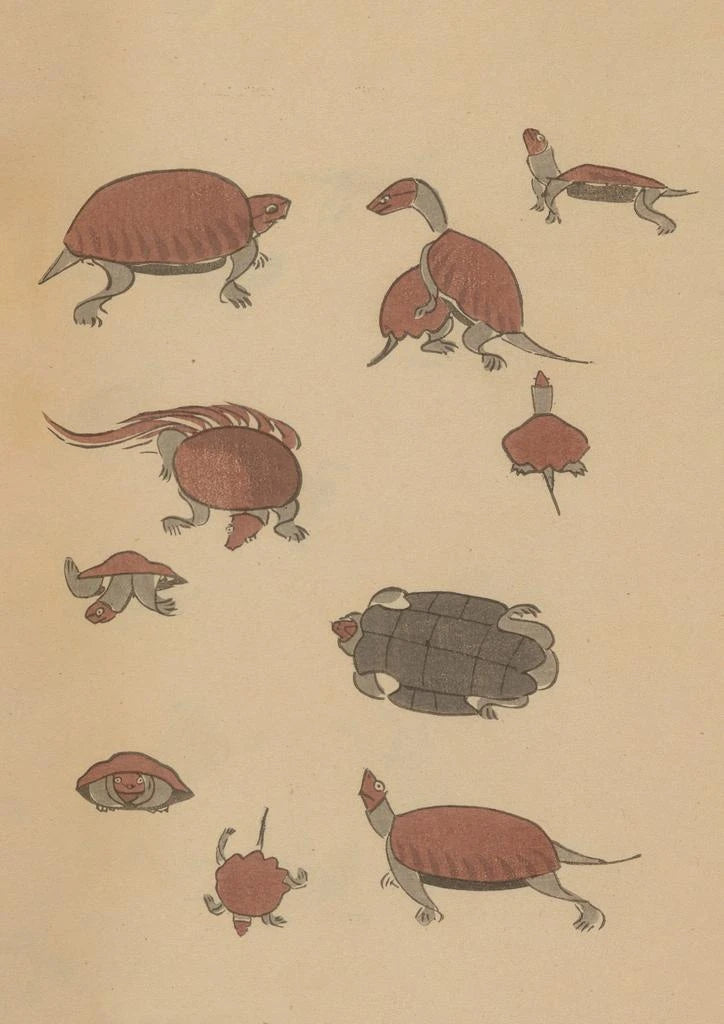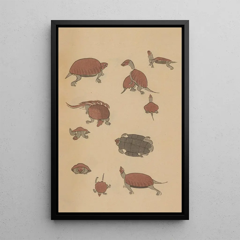 Die reproduction Choju ryakugashiki Pl39 von Masayoshi Kitao evoziert eine zarte Harmonie zwischen Natur und Kunst. Die lebendigen Farben und die fließenden Linien verschmelzen zu einer Szene, in der Tierwelt und Pflanzenwelt in einem visuellen Ballett verschmelzen. Die Technik des japanischen Holzschnitts, mit ihren detaillierten Feinheiten und subtilen Nuancen, schafft eine beruhigende, fast meditative Atmosphäre. Jedes Element der Komposition scheint eine Geschichte zu erzählen und lädt den Betrachter ein, in eine Welt einzutauchen, in der natürliche Schönheit gefeiert wird.