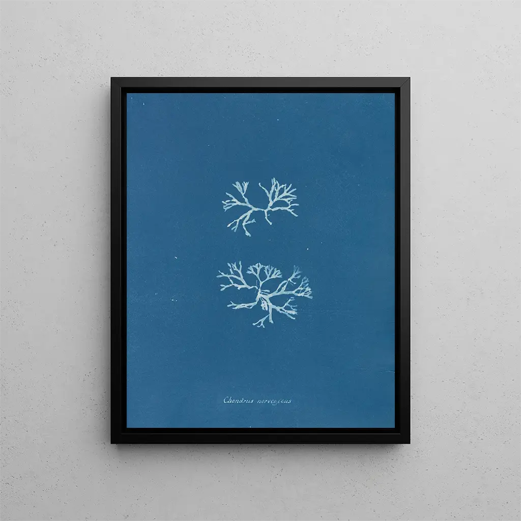 Die Reproduktion Chondrus norvegicus - Anna Atkins ist viel mehr als nur ein Kunstwerk. Sie verkörpert eine faszinierende Begegnung zwischen Wissenschaft und Ästhetik, einen visuellen Dialog, der die Epochen überdauert. Anna Atkins, Pionierin der botanischen Fotografie, hat die zerbrechliche Schönheit der Meeresalgen durch innovative Verfahren eingefangen. Dieses Werk, das eine Art roter Alge darstellt, ist das Ergebnis einer Leidenschaft für die Natur und dem Wunsch, die natürliche Welt mit künstlerischer Präzision zu dokumentieren. Beim Betrachten dieses Stücks wird der Betrachter in ein Universum versetzt, in dem Biologie auf Kunst trifft und die Zartheit sowie die Komplexität des Meereslebens offenbart werden.