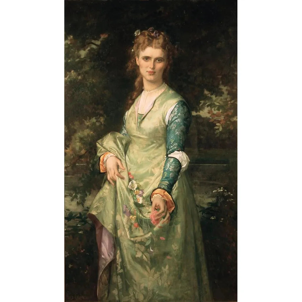 In diesem Werk fängt Alexandre Cabanel die Essenz von Christina Nilsson, der berühmten Opernsängerin, ein, indem er sie in der Rolle der Ophélie darstellt. Das Gemälde ist von einer romantischen Atmosphäre durchdrungen, in der die Sanftheit der Pastellfarben mit dunkleren Nuancen verschmilzt und sowohl die Schönheit als auch die Melancholie der Figur evoziert. Die Technik von Cabanel, mit ihren detaillierten Feinheiten und meisterhaften Lichtgebrauch, erweckt die Emotionen, die von dieser weiblichen Gestalt ausgehen, zum Leben. Jeder Pinselstrich scheint eine Geschichte zu erzählen und entführt den Betrachter in eine Welt voller Traum und Leidenschaft.