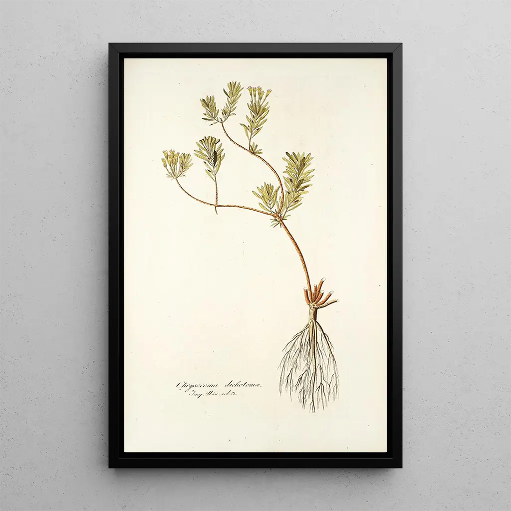 Chrysocoma dichotoma : eine Feier der wilden Flora Das Gemälde Chrysocoma dichotoma von Nikolaus Joseph Freiherr von Jacquin ist eine wahre Feier der Natur. Mit seinen goldenen und grünen Tönen erinnert dieses Werk an das Sonnenlicht, das durch die Blätter filtert. Die Präzision der Details, die durch die Aquarelltechnik erreicht wird, hebt die Zartheit der Blumen und Stängel hervor. Dieses Werk, sowohl wissenschaftlich als auch künstlerisch, lädt dazu ein, die Schönheit der Pflanzen zu bewundern, und zeugt gleichzeitig vom Staunen des Künstlers über die Biodiversität. Nikolaus Joseph Freiherr von Jacquin : ein Meister der botanischen Kunst Nikolaus Joseph Freiherr von Jacquin, Botaniker und Künstler des 18. Jahrhunderts, prägte seine Zeit mit präzisen und poetischen Illustrationen. Seine Reisen nach Südamerika bereicherten sein botanisches Wissen und beeinflussten seinen Stil. Er verstand es, Wissenschaft und Kunst zu verbinden, und ehrte die Vielfalt der Flora. Seine Werke, wie Chrysocoma dichotoma, sind Zeugnisse seines Engagements für die Natur und seines Wunsches, ihre Schönheit mit der Welt zu teilen. Als Pionier im Bereich der botanischen Illustration hinterließ er ein nachhaltiges Erbe in der Kunstgeschichte. Eine dekorative Anschaffung mit vielfältigen Vorzügen Der kunstdruck von Chrysocoma dichotoma ist die perfekte Wahl, um Ihren Wohnraum zu verschönern. Ob im Wohnzimmer, im Büro oder im Schlafzimmer, dieses Leinwandbild bringt einen Hauch von Natur und Ruhe in den Raum. Die Druckqualität garantiert eine Farbtreue und Detailgenauigkeit, die es ermöglicht, die Schönheit der Pflanze voll zu genießen. Mit seiner ästhetischen Anziehungskraft wird dieses Werk Liebhaber der Botanik und Kunst begeistern und zu einer wertvollen Ergänzung Ihrer Innendekoration werden.