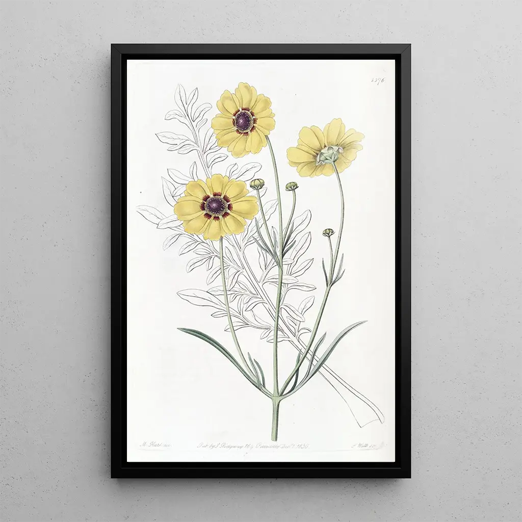 Coréopsis des teinturiers vivace : eine Explosion natürlicher Farben Das Kunstdruck des Coréopsis des teinturiers vivace, geschaffen von Sydenham Edwards, taucht uns in eine lebendige Blumenwelt ein. Die leuchtenden Nuancen von Gelb und Orange verschmelzen harmonisch und erinnern an das Sonnenlicht, das durch die zarten Blütenblätter scheint. Die Gouache-Technik ermöglicht es, die samtige Textur der Blumen einzufangen, während der subtil nuancierte Hintergrund die Schönheit dieser Pflanze hervorhebt. Die Atmosphäre, die dieses Werk ausstrahlt, ist zugleich fröhlich und beruhigend und lädt zu einer ruhigen Betrachtung der Natur ein. Sydenham Edwards: ein Pionier der botanischen Illustration Sydenham Edwards, aktiv im frühen 19. Jahrhundert, gilt als einer der Vorreiter der botanischen Illustration. Seine Arbeit, beeinflusst von der romantischen Bewegung, zeichnet sich durch wissenschaftliche Präzision verbunden mit künstlerischer Sensibilität aus. Edwards trug zur Dokumentation zahlreicher Pflanzenarten bei und ehrte die Biodiversität seiner Zeit. Seine Werke, darunter der Kunstdruck des Coréopsis des teinturiers vivace, sind nicht nur Zeugnisse der Flora, sondern auch Reflexionen über die Ästhetik der Natur. Sein Erbe lebt weiter und inspiriert Botaniker und zeitgenössische Künstler. Eine dekorative Anschaffung mit vielfältigen Vorzügen Der Kunstdruck des Coréopsis des teinturiers vivace ist eine ideale dekorative Wahl, um verschiedene Räume zu verschönern, sei es im Wohnzimmer, im Büro oder im Schlafzimmer. Seine lebendige Farbpalette bringt Frische und Vitalität in jeden Raum. Die Druckqualität garantiert eine detailgetreue Wiedergabe des Originals, sodass jede Nuance und Textur geschätzt werden kann. Durch das Hinzufügen dieses Bildes zu Ihrer Sammlung verleihen Sie Ihrer Dekoration einen unverkennbaren ästhetischen Reiz und feiern gleichzeitig die Schönheit der Natur.