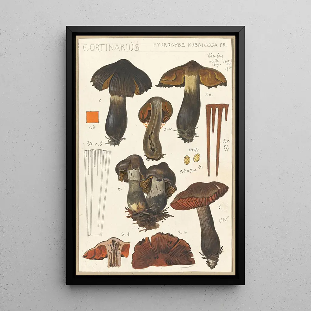 Der kunstdruck des Werks "Cortinaire" von Hans Baldung entführt uns in eine faszinierende Welt, in der Natur und Fantasie aufeinandertreffen. Die lebendigen Farben, die von tiefem Grün bis zu erdigen Brauntönen reichen, schaffen eine Atmosphäre, die sowohl mystisch als auch organisch ist. Die Technik von Baldung, gekennzeichnet durch mutige Pinselstriche und eine sorgfältige Detailarbeit, erweckt diesen Pilz in einem Spiel aus Schatten und Licht zum Leben. Jedes Element des Gemäldes scheint zu atmen und lädt den Betrachter ein, die Feinheiten der Komposition zu erkunden und über die verborgene Botschaft hinter dieser Darstellung nachzudenken.