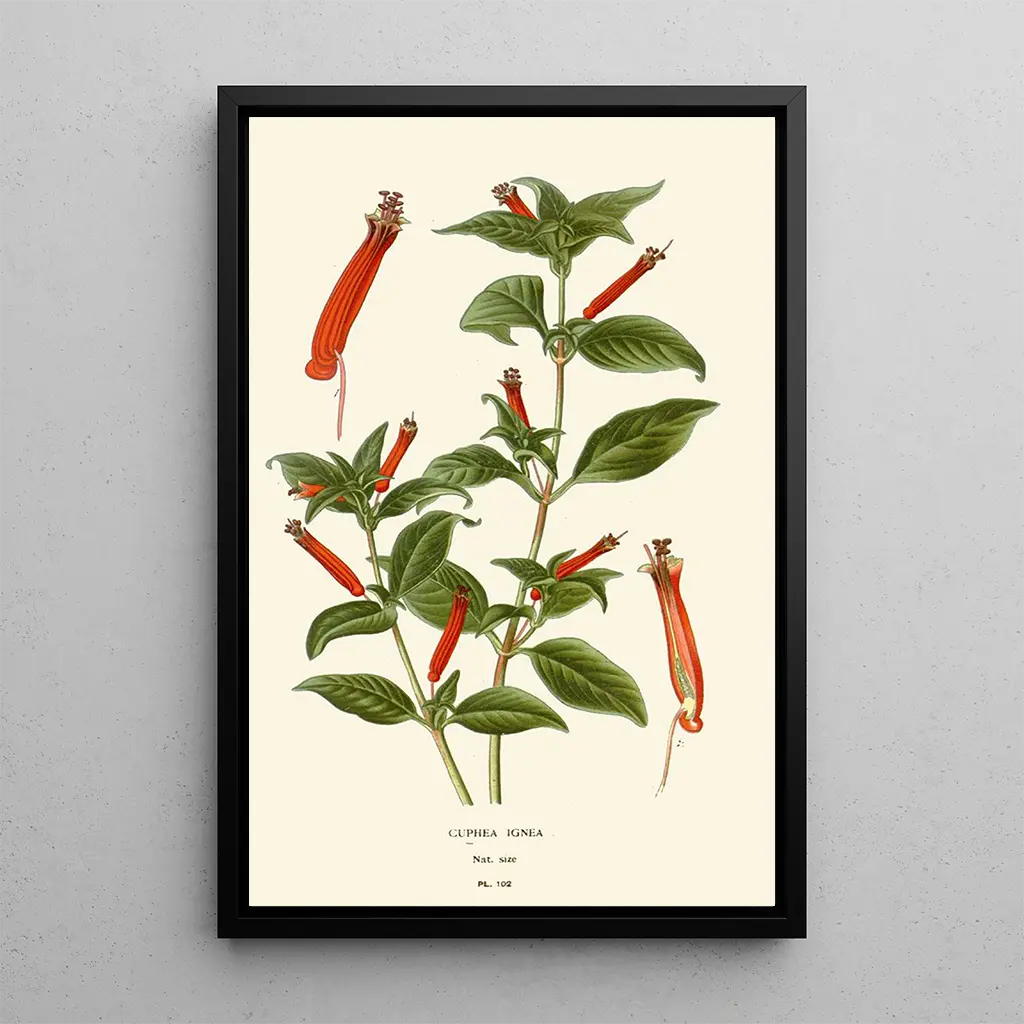 Cuphea ignea : eine Explosion lebendiger Farben Die kunstdruck von Cuphea ignea von Edward Step ist eine wahre Ode an die Natur und fängt die Essenz dieser exotischen Pflanze ein. Die leuchtenden Rottöne und Orangen harmonieren perfekt und schaffen eine warme, einladende Atmosphäre. Die Technik von Step, die botanische Präzision mit künstlerischer Sensibilität verbindet, ermöglicht es, die Zartheit der Blütenblätter und die Fülle des Laubs zu spüren. Jedes Detail ist sorgfältig wiedergegeben und lädt den Betrachter ein, in eine Welt einzutauchen, in der natürliche Schönheit im Vordergrund steht. Dieses Werk, durch seinen Glanz, ruft ein Gefühl von Freude und Vitalität hervor und ist perfekt, um jeden Raum aufzuhellen. Edward Step : ein Pionier der botanischen Kunst Edward Step, Botaniker und Künstler des 19. Jahrhunderts, verstand es, seine Leidenschaften für Wissenschaft und Kunst zu verbinden. Seine Arbeit zeichnet sich durch eine sorgfältige Herangehensweise und Liebe zum Detail aus, beeinflusst von den künstlerischen Bewegungen seiner Zeit, insbesondere dem Präraffaelismus. Step widmete einen großen Teil seines Lebens der Erforschung von Pflanzen, und seine Werke gelten oft als Referenzen im Bereich der botanischen Illustration. Durch die präzise Darstellung der Schönheit der Blumen trug er zur Bildung und Wertschätzung der Naturwissenschaften bei und hinterließ ein nachhaltiges künstlerisches Erbe. Eine dekorative Anschaffung mit vielfältigen Vorteilen Der kunstdruck von Cuphea ignea ist ein ideales Dekorationsstück für verschiedene Räume wie Wohnzimmer, Büro oder Schlafzimmer. Seine lebendige Farbpalette bringt Frische und Dynamik in Ihr Zuhause und fördert gleichzeitig eine beruhigende Atmosphäre. Die Qualität des kunstdrucks garantiert eine bemerkenswerte Treue zu den Details des Originalwerks, sodass die Schönheit dieser Pflanze voll zur Geltung kommt. Mit dieser Leinwand entscheiden Sie sich für ein dekoratives Element, das nicht nur Ihren Raum verschönert, sondern auch eine tiefe Verbindung zur Natur herstellt.