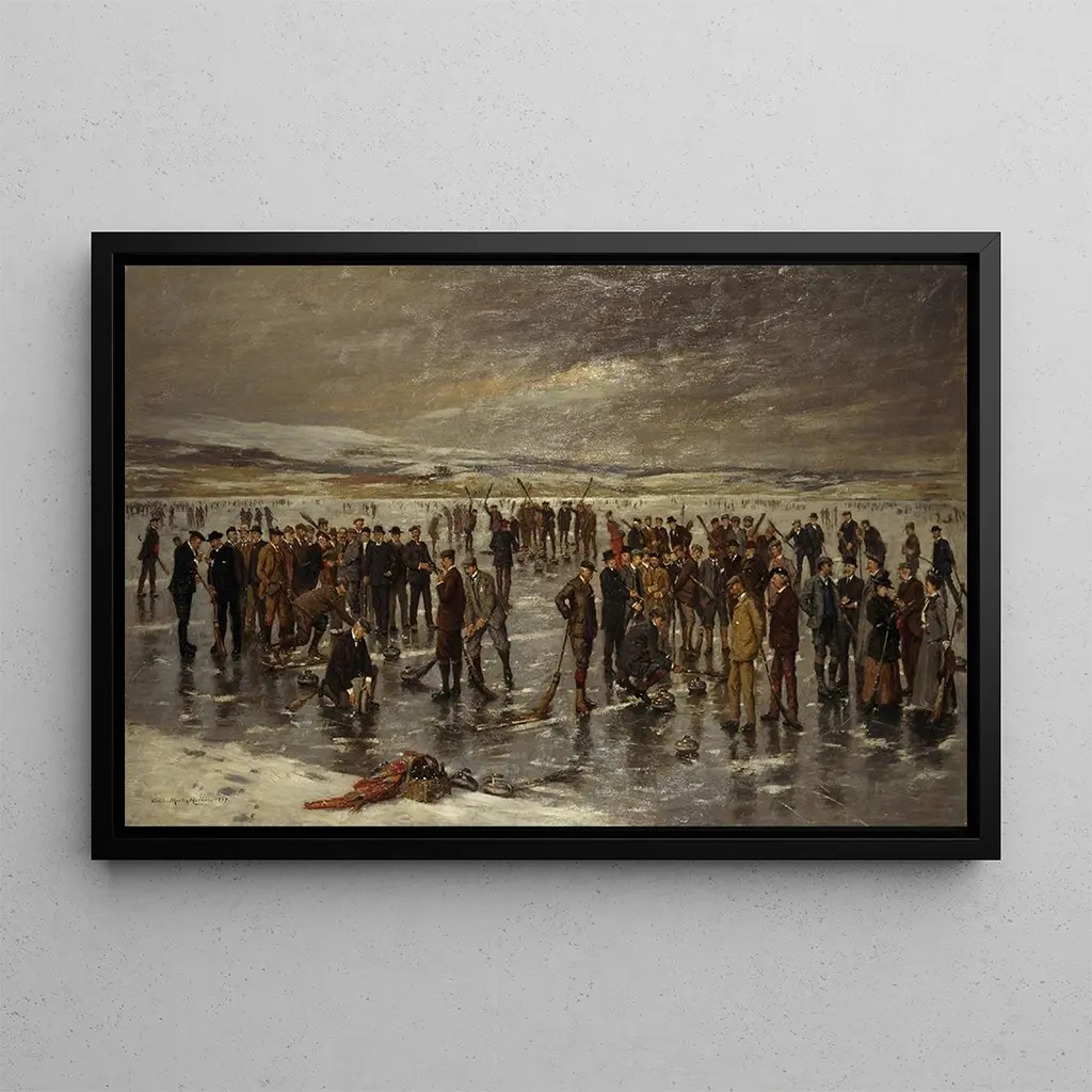 Curling à Carsebreck : eine lebendige Szene des ländlichen Lebens In "Curling à Carsebreck" fängt Charles Martin Hardie das Wesen einer traditionellen schottischen Aktivität ein. Das Leinwandbild, reich an Details, zeigt bewegte Figuren auf dem Eis, umgeben von einer winterlichen Landschaft. Die kühlen Farben dominieren, mit Nuancen von Blau und Weiß, während rote und grüne Akzente Wärme in die Szene bringen. Hardies Technik, die Realismus und Impressionismus verbindet, schafft eine lebendige und dynamische Atmosphäre, die den Betrachter einlädt, den Nervenkitzel des Wettbewerbs und die Kameradschaft der Teilnehmer zu spüren. Charles Martin Hardie : ein Meister der Landschaft und des Alltagslebens Charles Martin Hardie, aktiv Ende des 19. und Anfang des 20. Jahrhunderts, ist bekannt für seine Darstellungen des ländlichen Lebens und schottischer Landschaften. Beeinflusst vom Präraffaeliten- und Impressionistenbewegung, verstand er es, Licht- und Farbelemente zu integrieren, die seine Werke besonders lebendig machen. Seine Karriere, geprägt von einer Erforschung der Themen Natur und menschliche Aktivitäten, trug dazu bei, die Schönheit schottischer Traditionen hervorzuheben. "Curling à Carsebreck" ist ein perfektes Beispiel für seine Fähigkeit, Momente des Alltagslebens mit poetischer Note zu verewigen. Eine dekorative Anschaffung mit vielfältigen Vorzügen Der kunstdruck von "Curling à Carsebreck" ist eine ideale Wahl, um Ihr Zuhause zu verschönern, sei es im Wohnzimmer, im Büro oder im Schlafzimmer. Dieses Leinwandbild, mit seiner warmen Atmosphäre und seinem Dynamismus, zieht den Blick auf sich und regt Gespräche an. Die Qualität des kunstdrucks garantiert eine detailgetreue Wiedergabe der Originalfarben und -details, sodass Sie das Werk in seiner ganzen Pracht genießen können. Durch das Hinzufügen dieses Bildes zu Ihrer Dekoration bringen Sie ein Stück Geschichte und Kultur in Ihr Zuhause und schaffen gleichzeitig eine freundliche und einladende Atmosphäre.