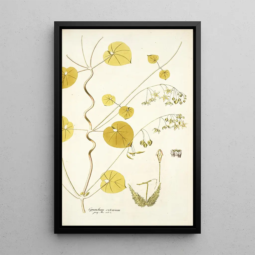 Die kunstdrucke von Cynanchum extensum entführen uns in eine Welt, in der die Vegetation mit unvergleichlicher Pracht erblüht. Dieses Gemälde, signiert von Nikolaus Joseph Freiherr von Jacquin, zeigt eine harmonische Komposition, in der sich organische Formen fließend verbinden. Die lebendigen Farben, von tiefem Grün bis hin zu leuchtendem Gelb, schaffen eine lebendige und dynamische Atmosphäre. Die Aquarelltechnik, meisterhaft von Jacquin beherrscht, fängt die Leichtigkeit und Zartheit der Pflanzen ein und ehrt die Schönheit der Flora.