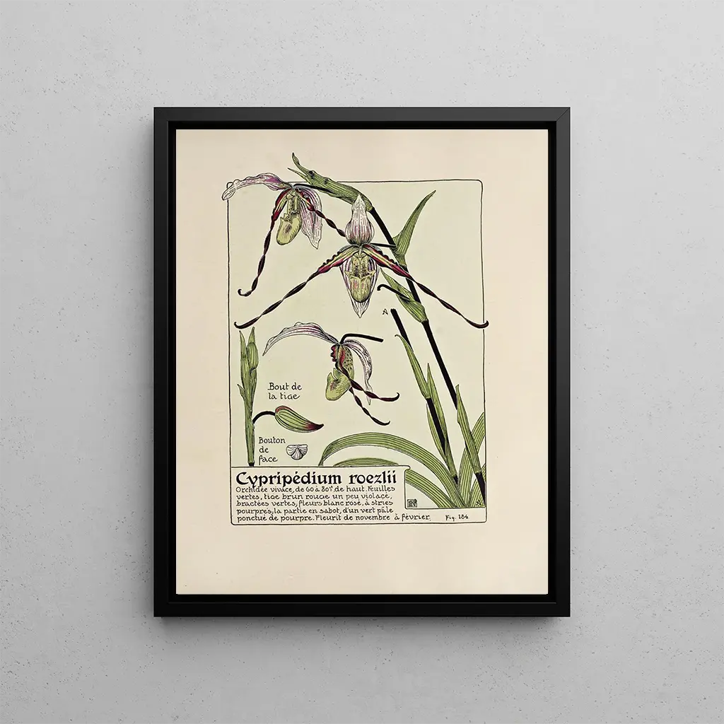 Entdecken Sie das exquisite Cypripedium röselii von Maurice Pillard Verneuil, ein Meisterwerk der botanischen Kunst. Dieses elegante Kunstwerk bringt die natürliche Schönheit der Orchidee in Ihr Zuhause und verleiht jedem Raum eine Atmosphäre von Raffinesse und Stil.